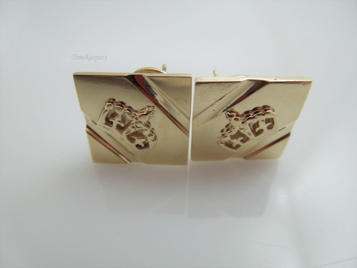 c592 Elegant Retro Ladies 10kt Yellow Gold Square Crown Earrings