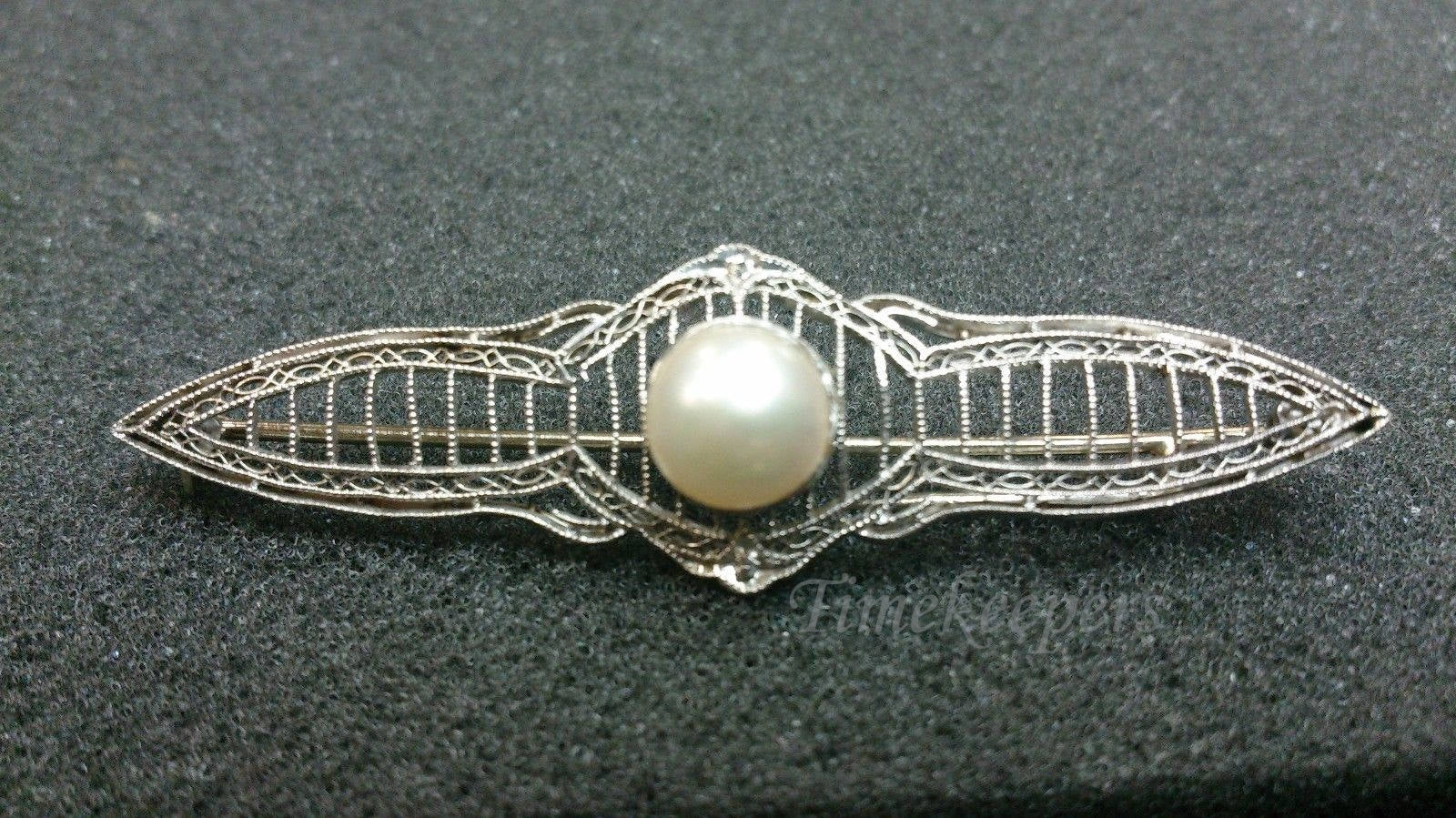 b109 Spectacular Art Deco 10k White Gold Filigree Pin / Brooch with Pearl