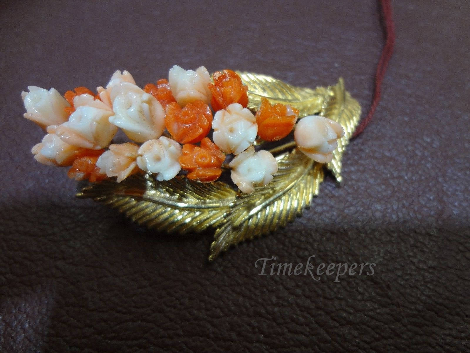 b017 Amazing Vintage 14k Gold Red and Pink Coral Brooch