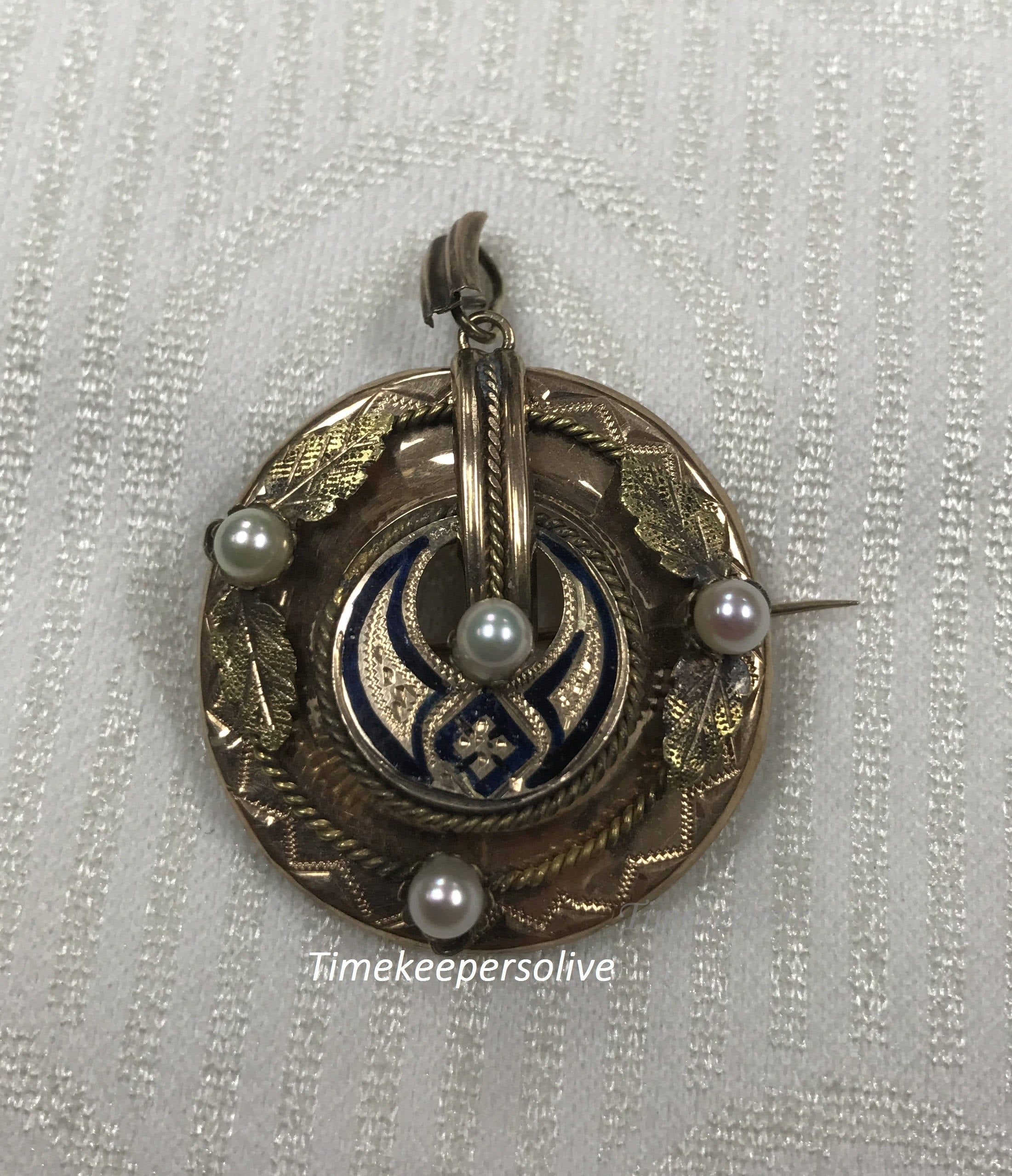 a693 Vintage 14k Yellow Gold Ornament Pearl Elegant Brooch Pendant Collectible