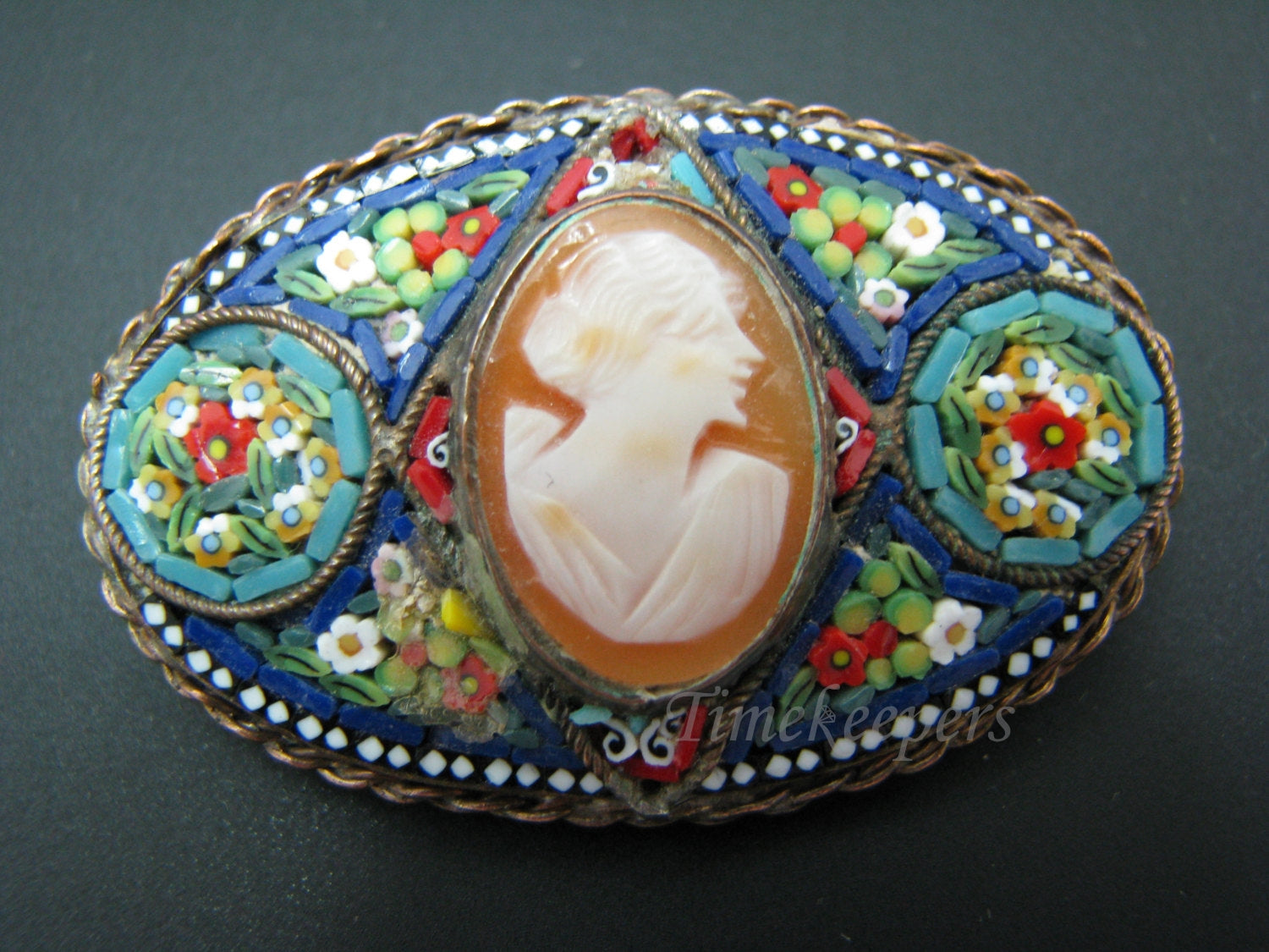 c670 Vintage Beautiful Italian Cameo Micro Mosaic Brooch
