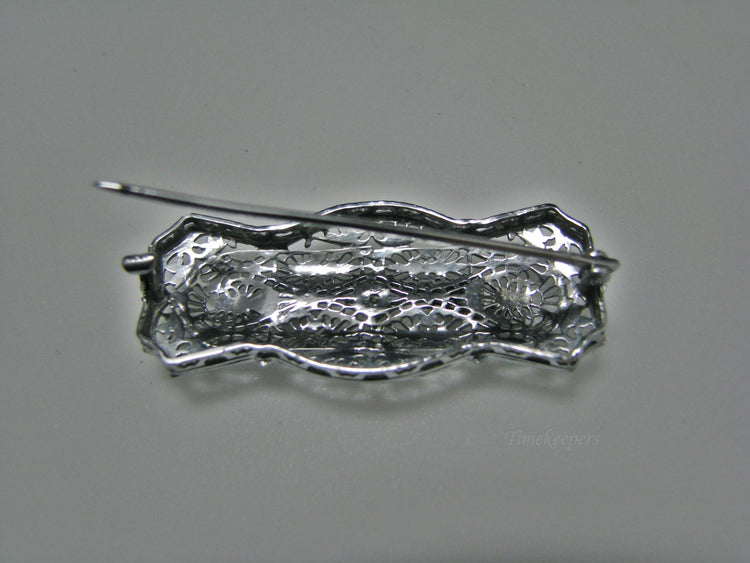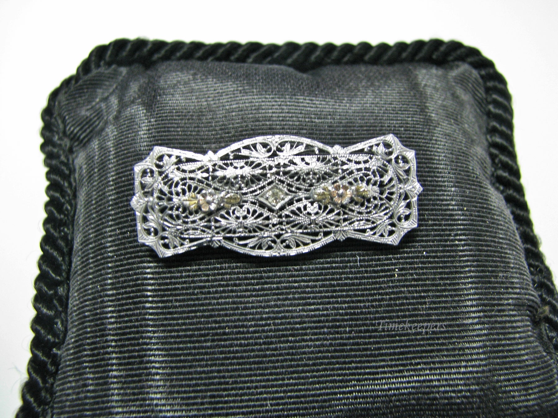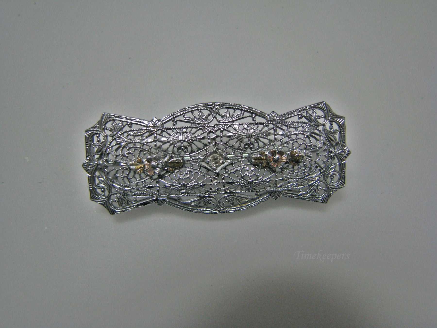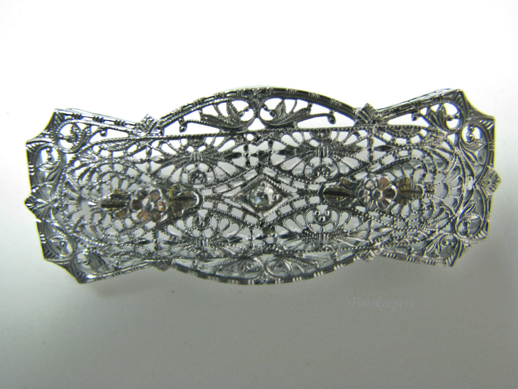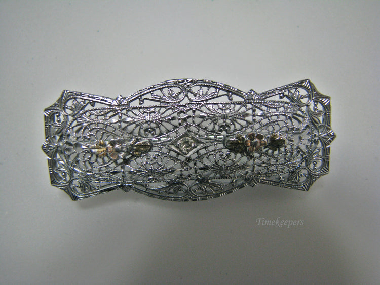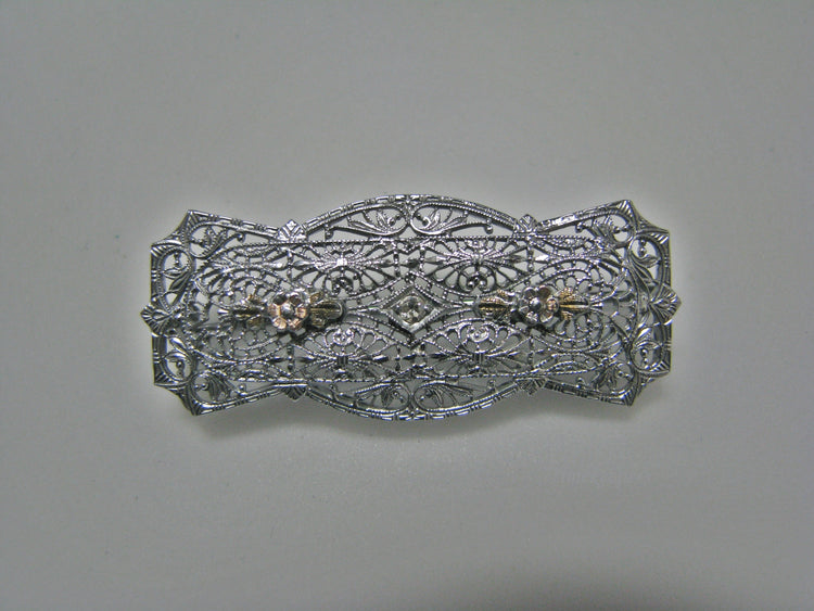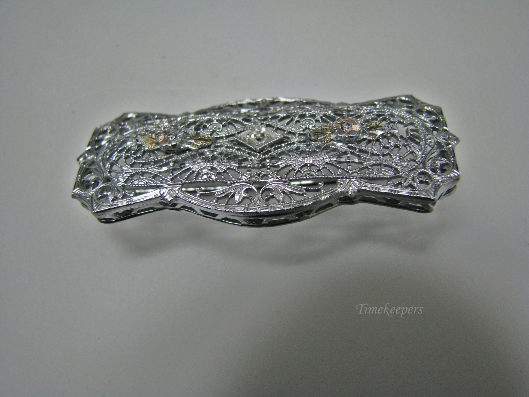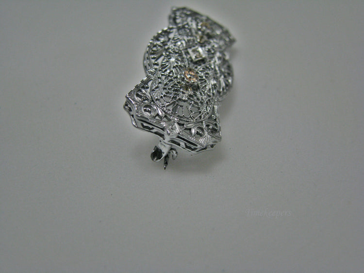H158 Stunning 10k White Gold Filigree Pin / Brooch with Diamond in the Center