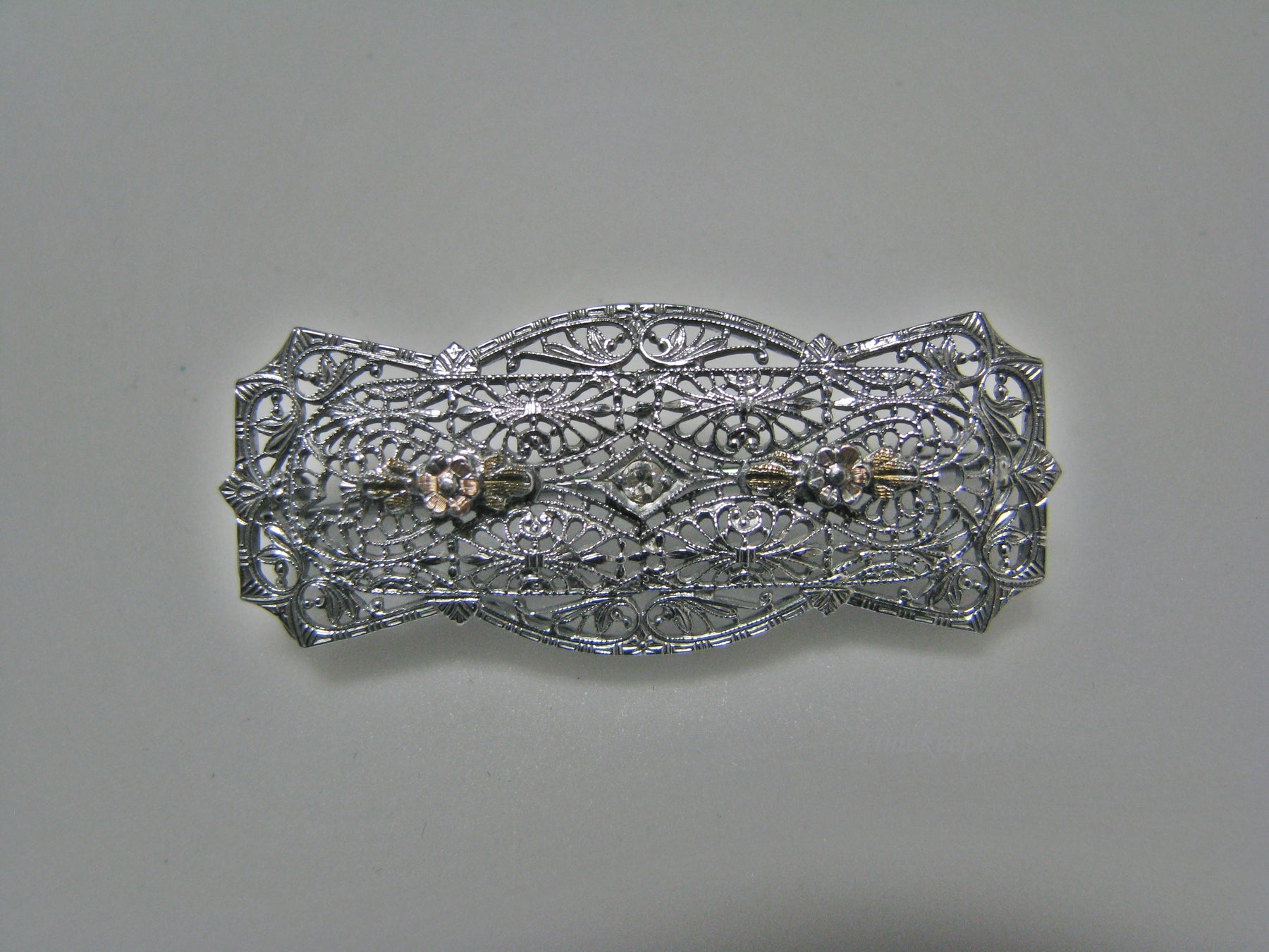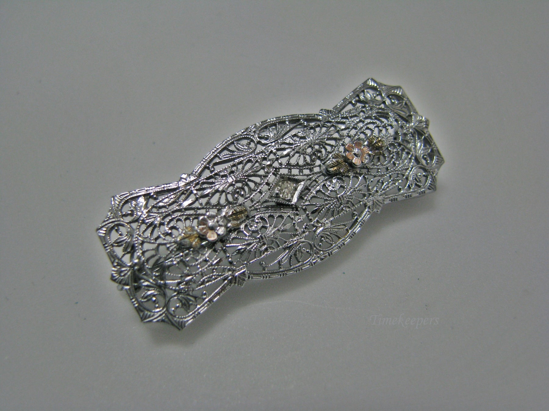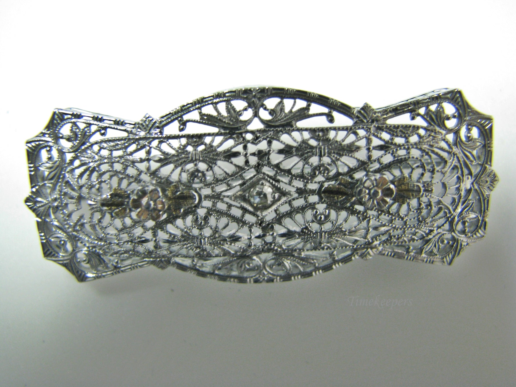 For Sale: (1) H158 Stunning 10k White Gold Filigree Pin / Brooch with Diamond in the Center