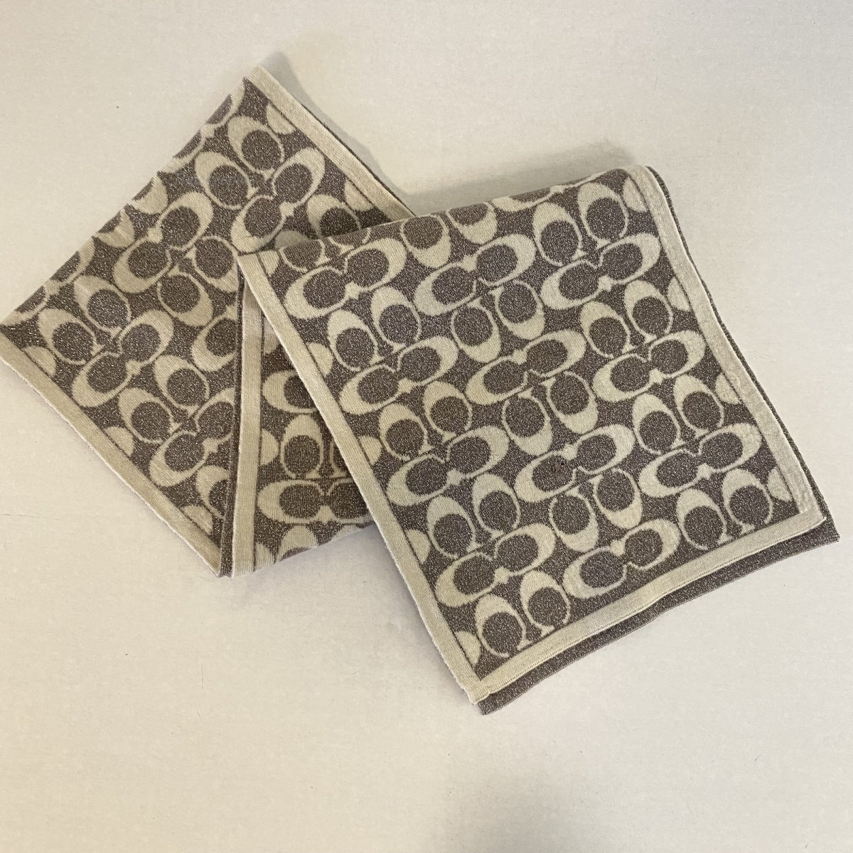 m361 Coach Signature Logo Wool Blend Winter Scarf Silver White Metallic