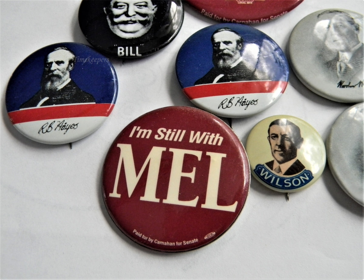 p273 Lot of Eight Campaign Buttons, Carnahan, Taft, Wilson and Hayes