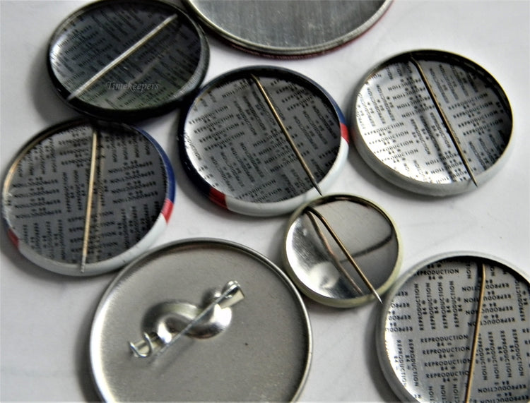 Two R.B. Hayes buttons at 1 1/2" in diameter. Marked Reproduction on back.