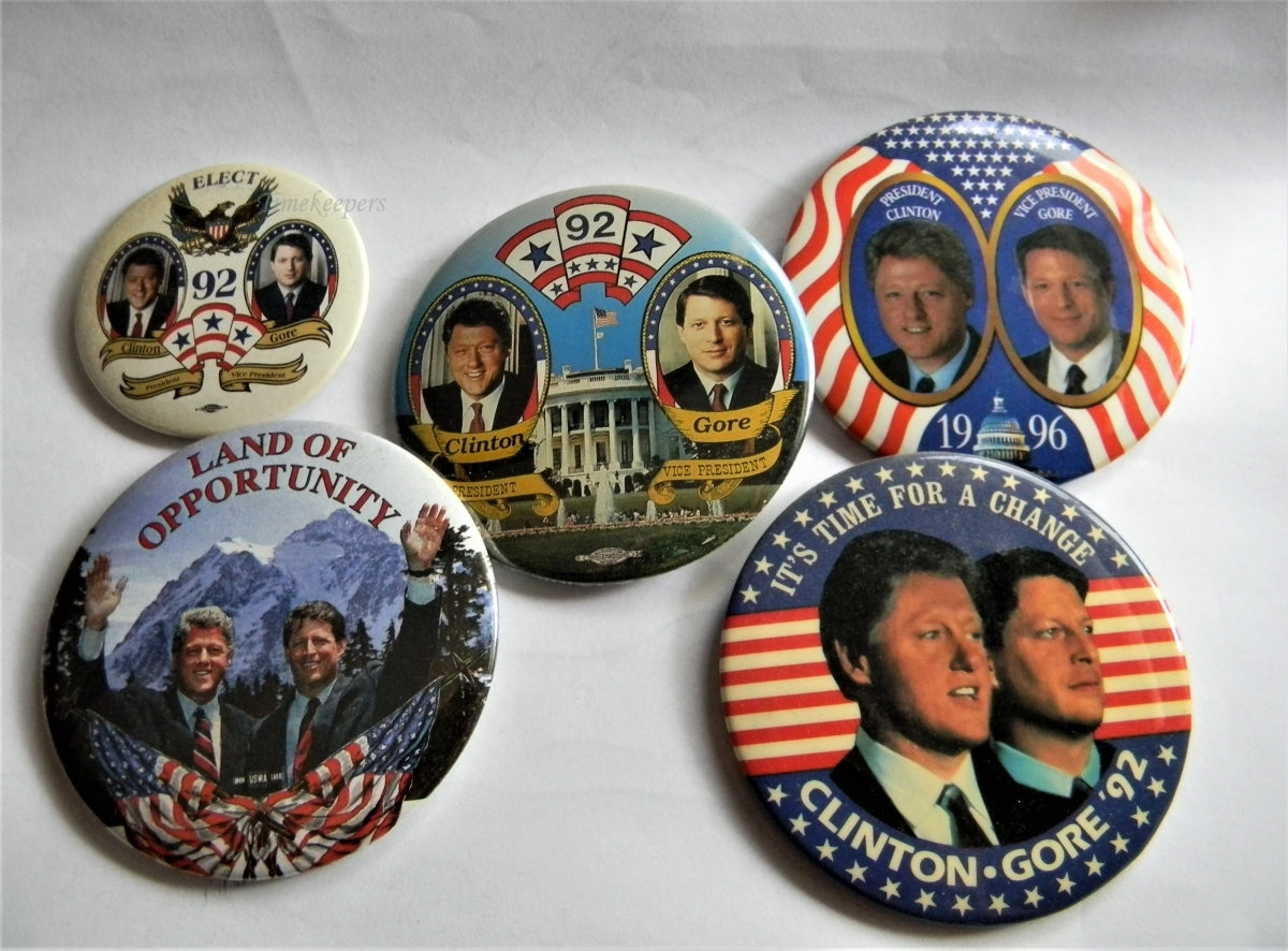 For Sale: (1) Lot of Five Campaign Buttons - Pins, '92 and 1996 Clinton - Gore