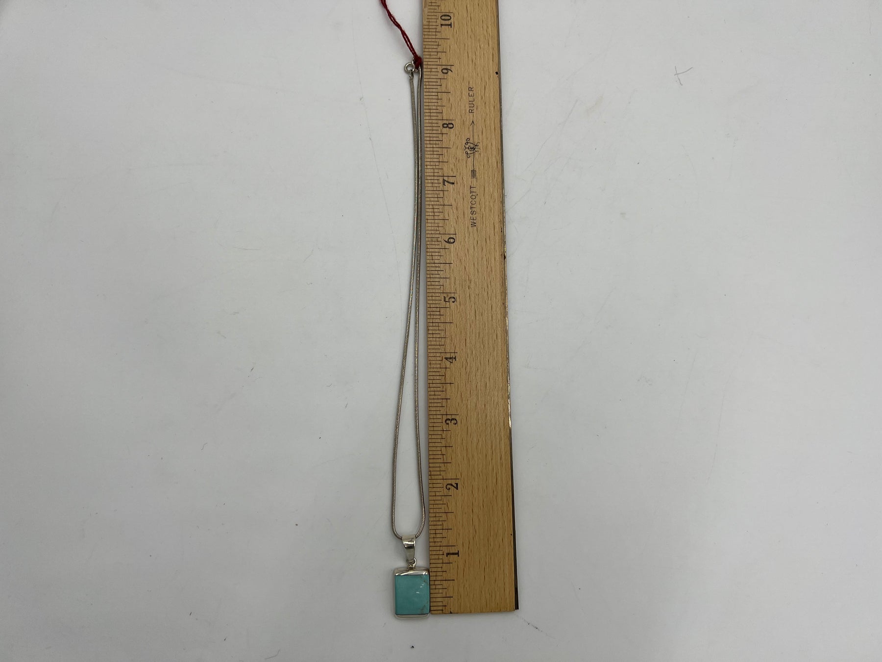 Sterling silver 925 and turquoise. Necklace is 14.7 grams.
