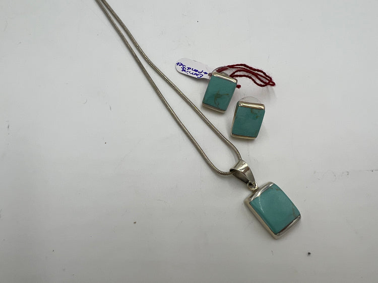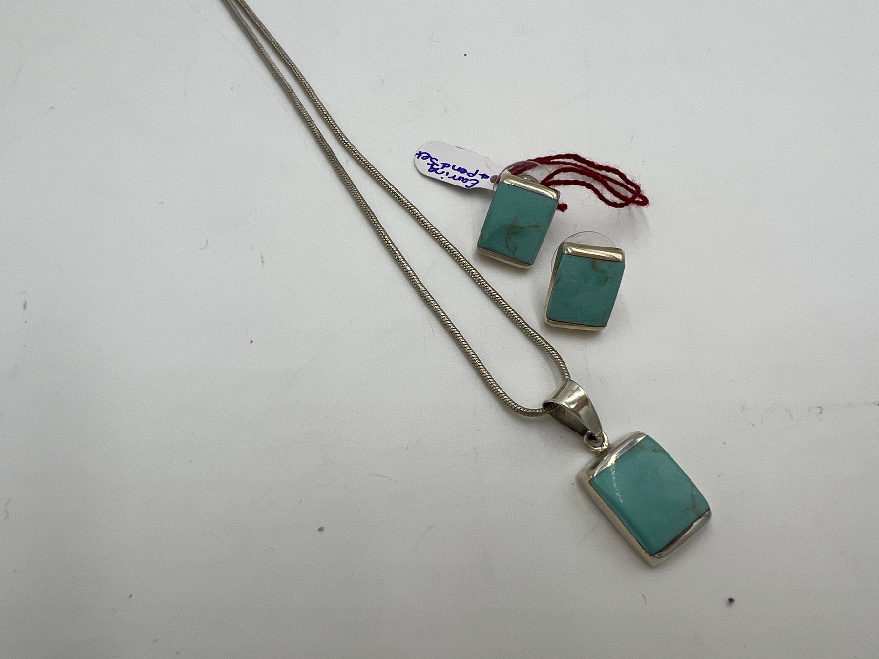 For sale: (1) t714 Unique Turquoise and Silver Earring and Necklace Set