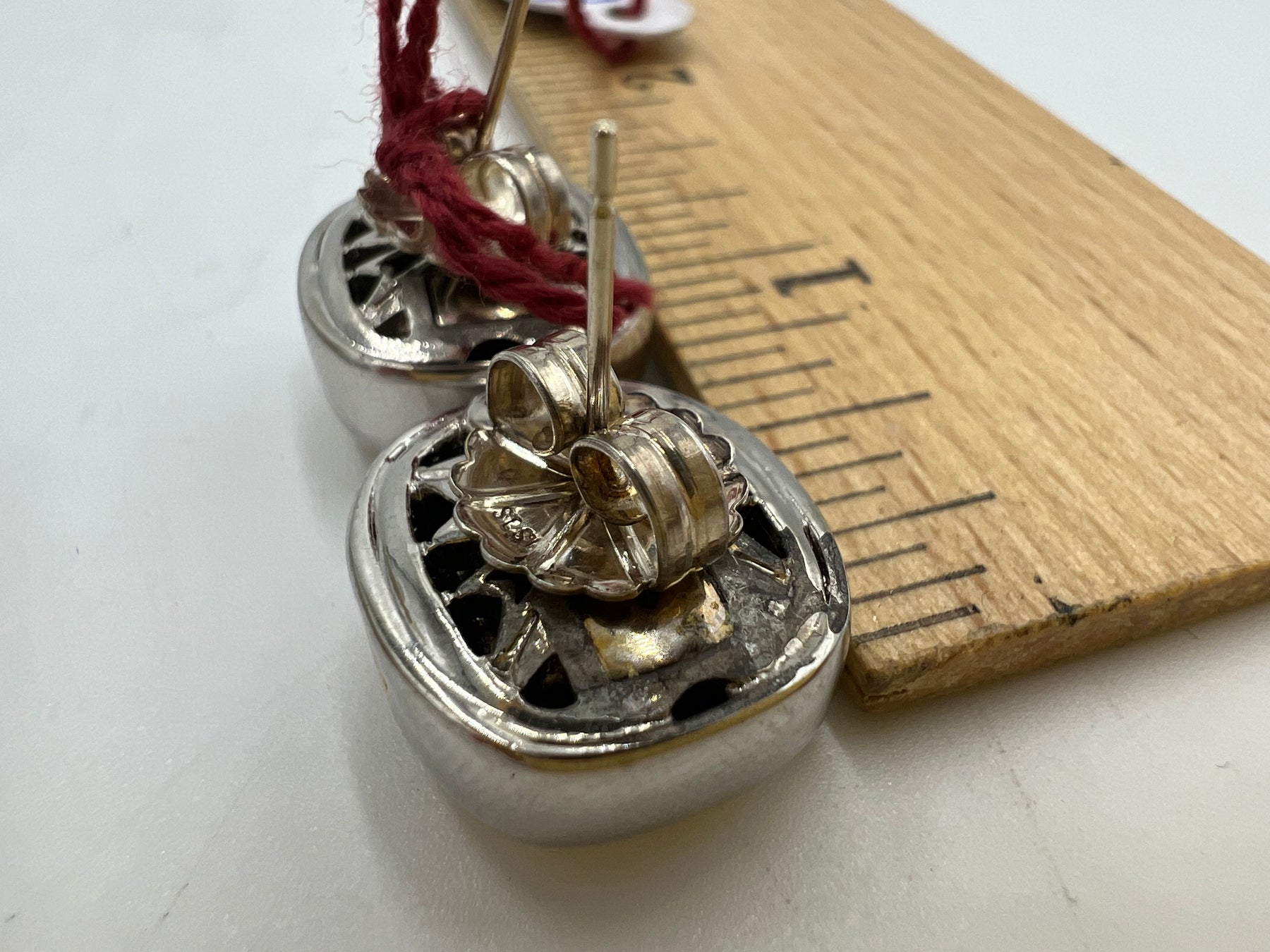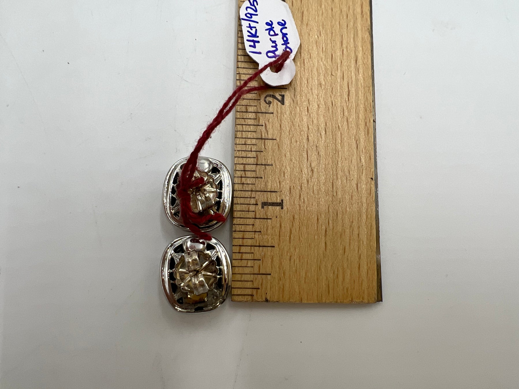 For sale: (1) t718 Beautiful Gold and Sterling Silver Purple Stone Earrings PLEASE READ ENTIRE DESCRIPTION BEFORE PURCHASING Pre-owned item. Good condition. Please see pictures for details. Sold as is, as seen on pictures. Beautiful 14kt Gold and 925 Sterling Silver earrings. Specifics: 14kt gold and 925 sterling silver. Synthetic purple stone. Together, earrings weigh 17.7 grams.