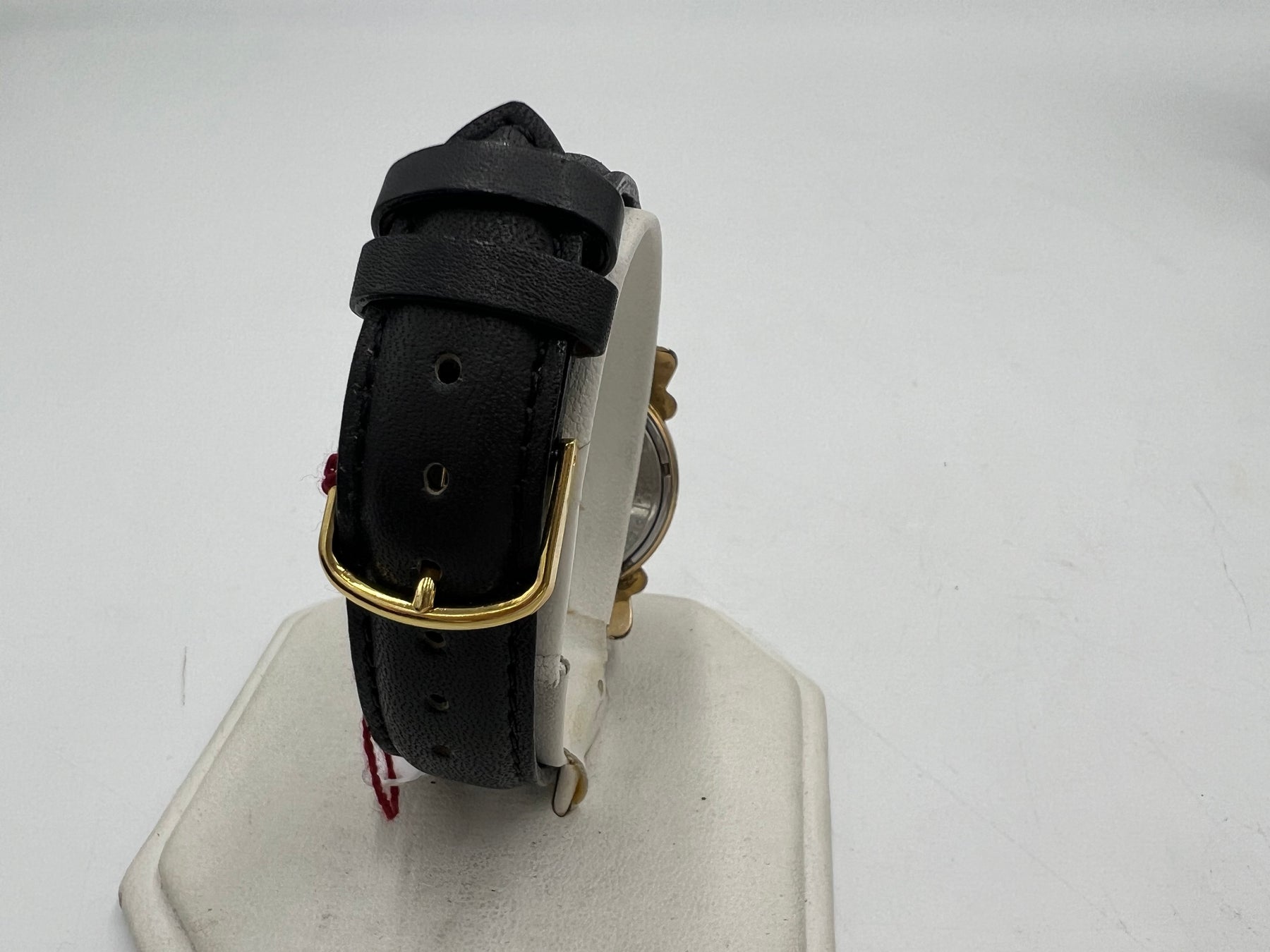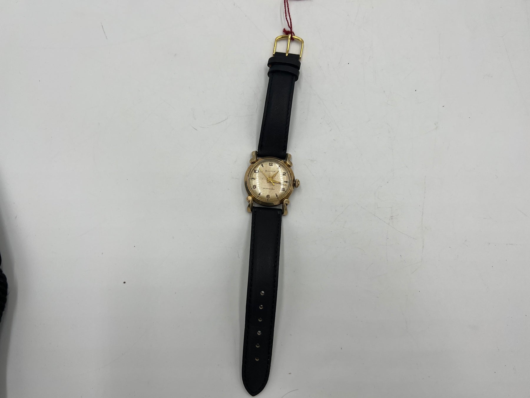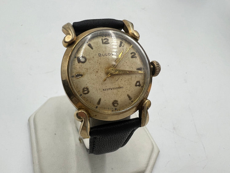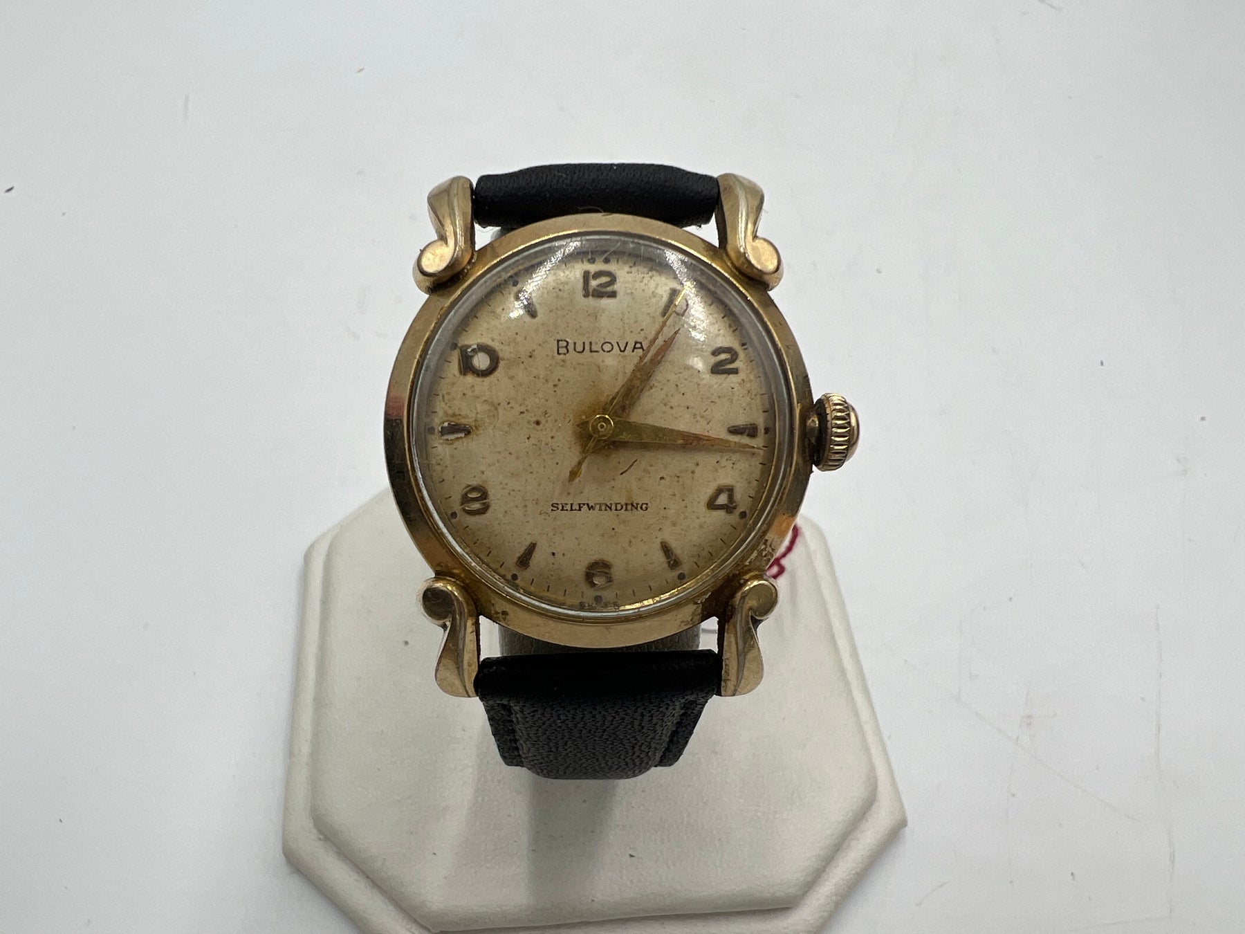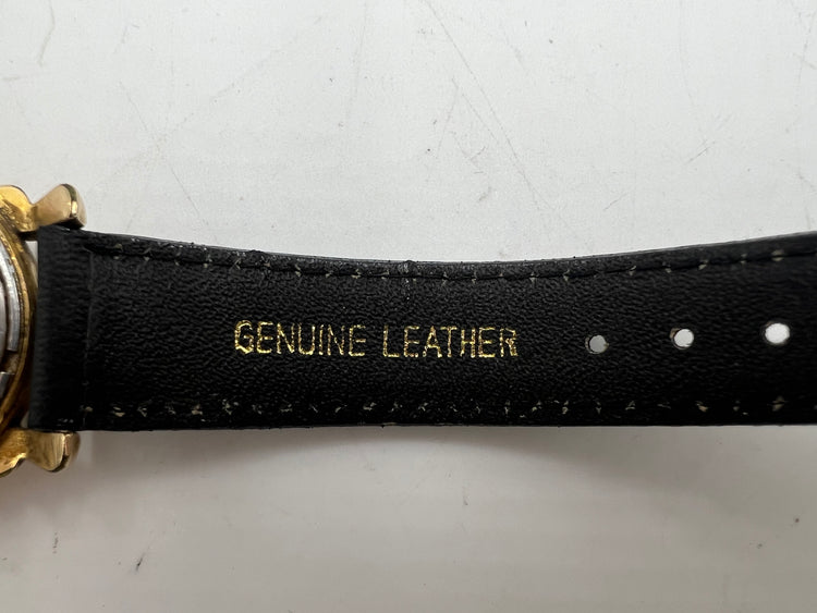 This Bulova wristwatch is a timeless piece that exudes elegance and sophistication. The gold tone bezel and stainless steel case offer durability and style. The black leather band accents the gold dial with its 12-hour display, making it perfect for any occasion, whether it's a formal or casual event. The mechanical automatic movement ensures accurate timekeeping, while the watch's features include a 12-hour dial. This Bulova watch is perfect for any watch collector or anyone who appreciates quality craftsmanship.