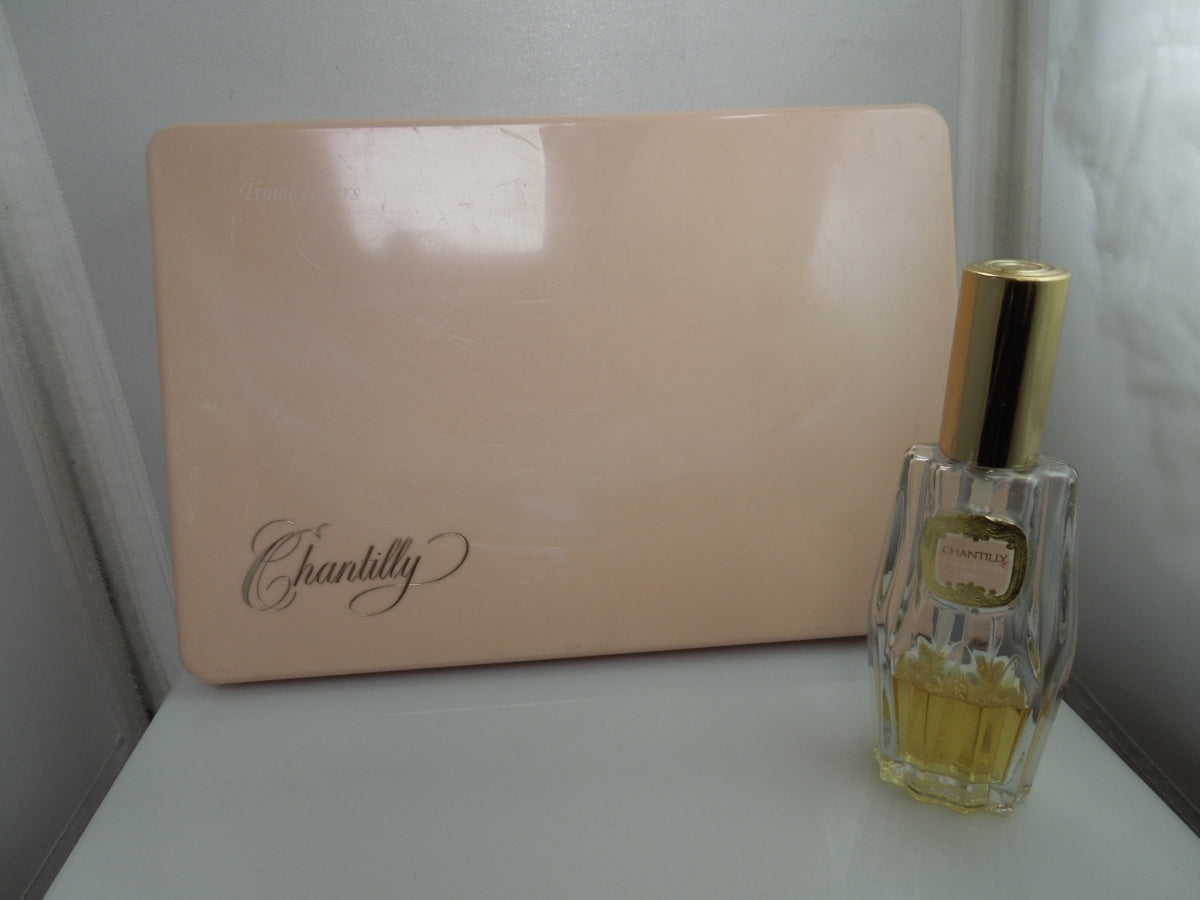 h685 Vintage Chantilly Perfume Case with Mirror Powder Soap Lotion