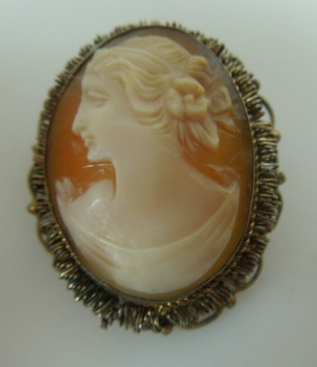 r016 Vintage Beautiful Gold Tone Carved Shell Cameo Ornate Pin Brooch Pendant