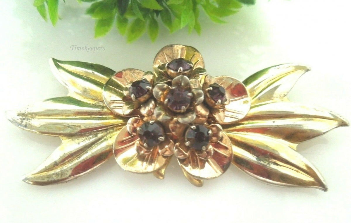 r015 Vintage Gold Filled Floral Inlay Pin Brooch