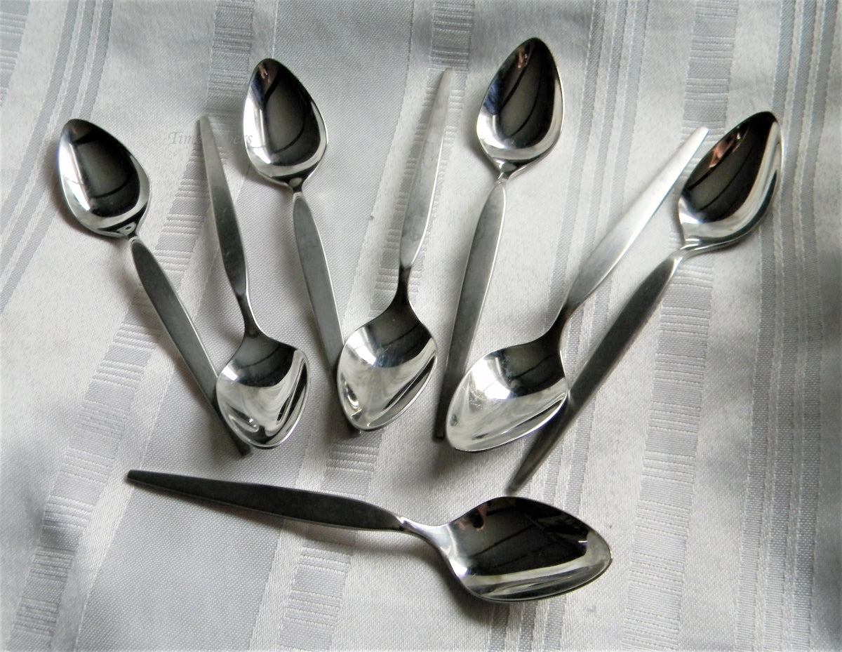 p163 Vintage Stainless set of 8 Demitasse Spoons Oneida Community