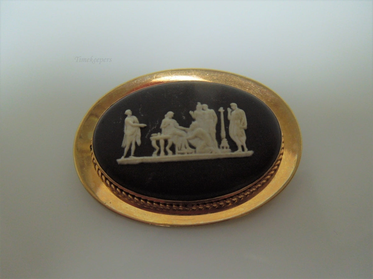 s267 Wedgwood black /rare/ brooch Gold Filled Made In England