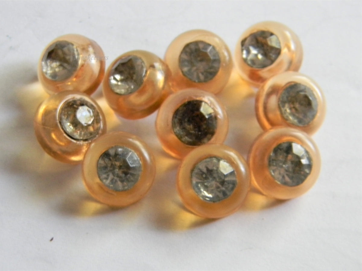 p342 Set of (10) Vintage Amber Plastic Buttons with Rhinestones and Shanks