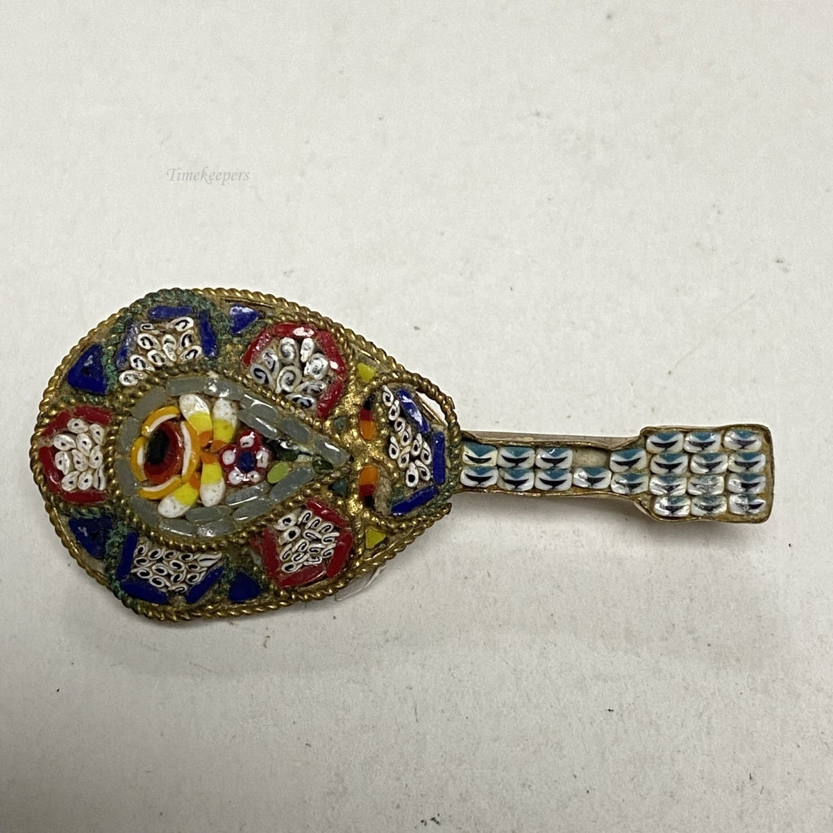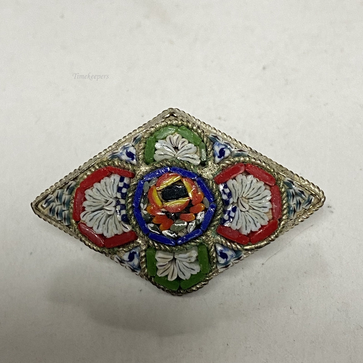 m643 Vintage Rare Micro Mosaic Floral Brooch Red Blue White Banjo Made in Italy