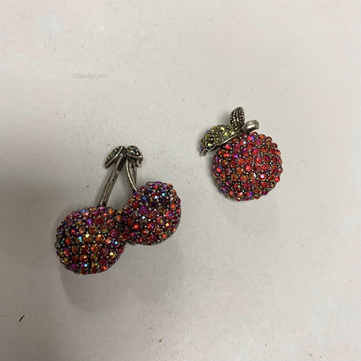 m647 Vintage Lot of 2 Fruit Brooch Pin Cherry Apple