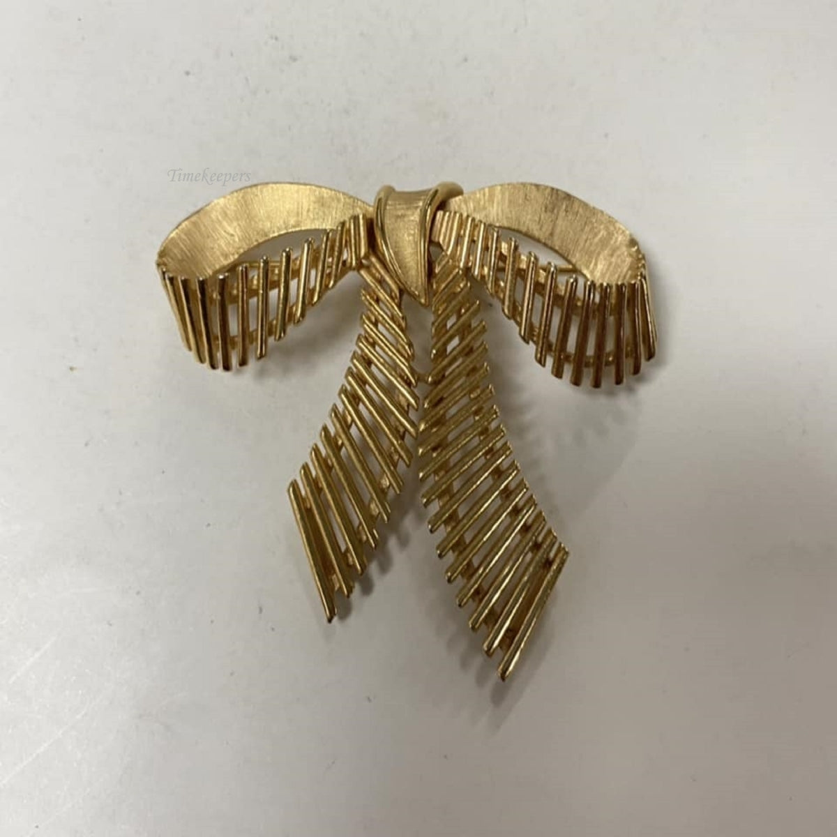 m654 Vintage Trifari Gold Plated Bow Brooch Pin