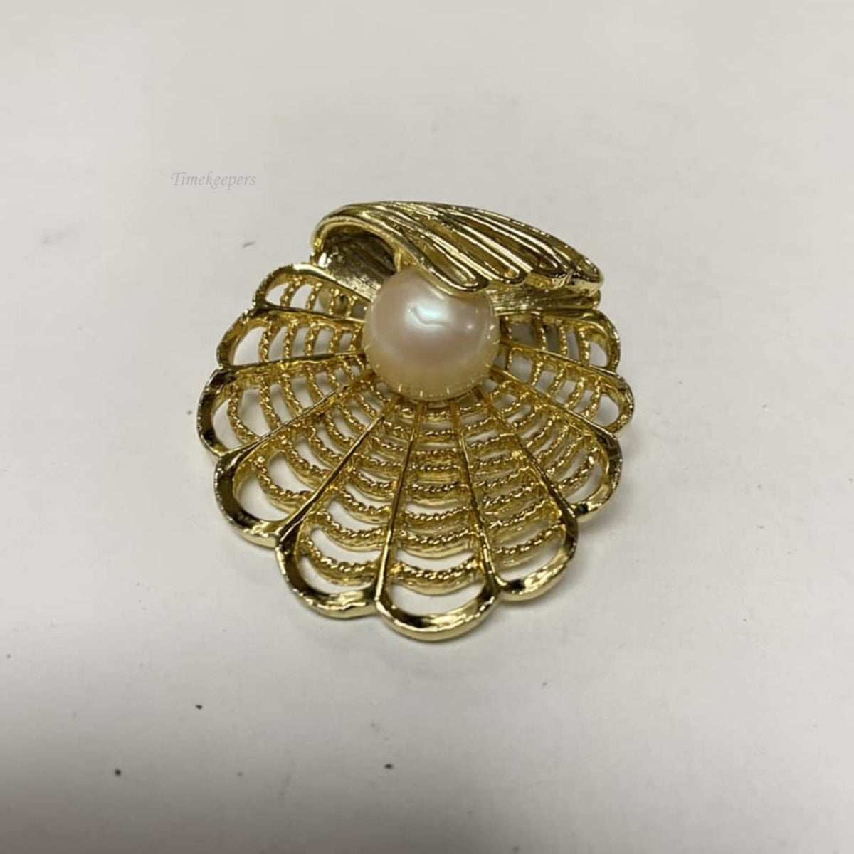 m655 Vintage Gold Tone Shell with a Pearl Brooch Pin
