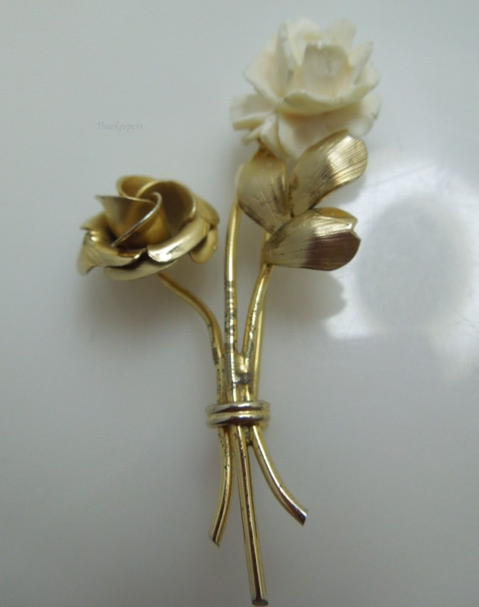 s684 GIOVANNI Rose Brooch Vintage Gold Metal Flower Floral Costume Jewelry Pin
