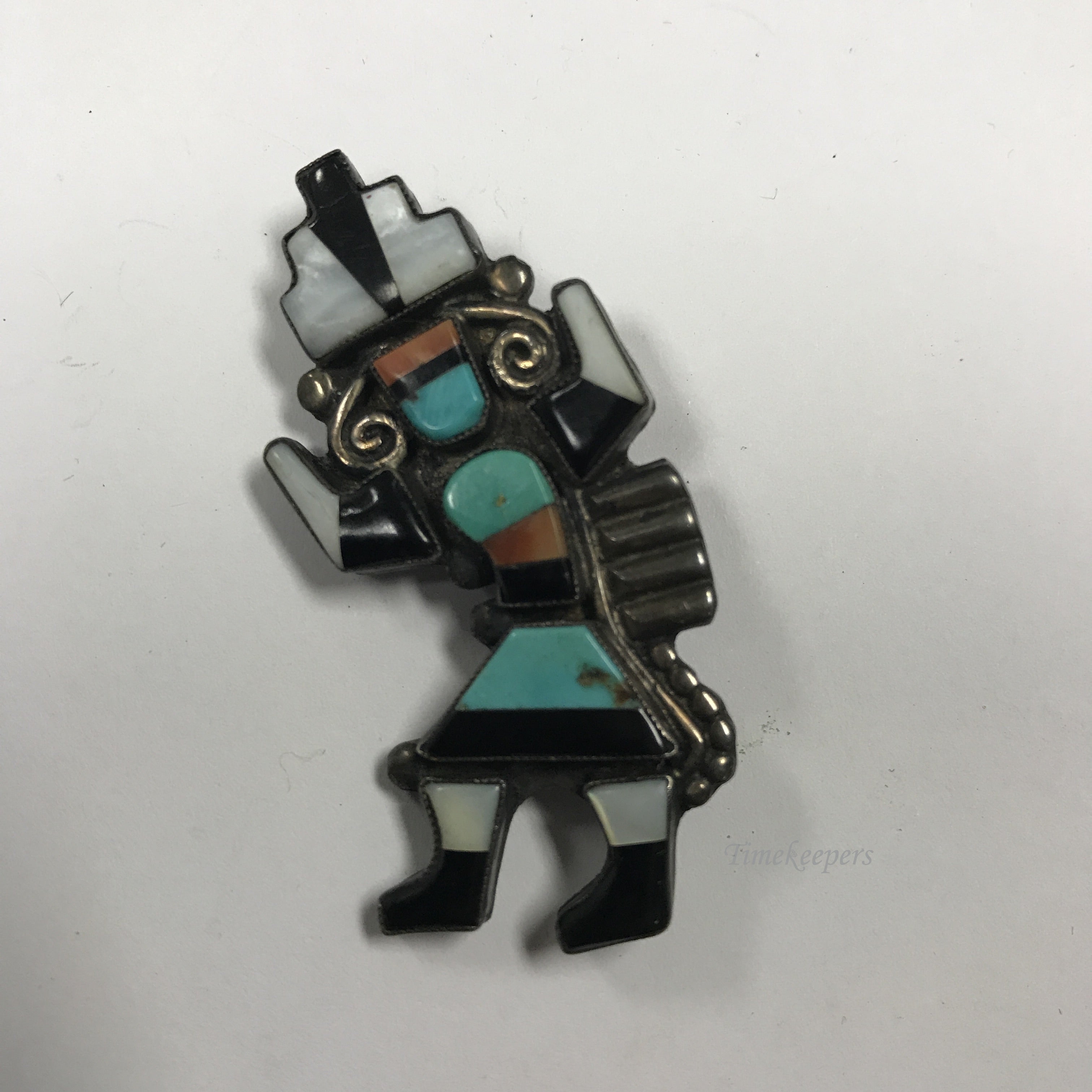 d173 Vintage Zuni RAINBOW MAN Multi-Color Mosaic Inlay Pin Brooch Onyx Turquoise