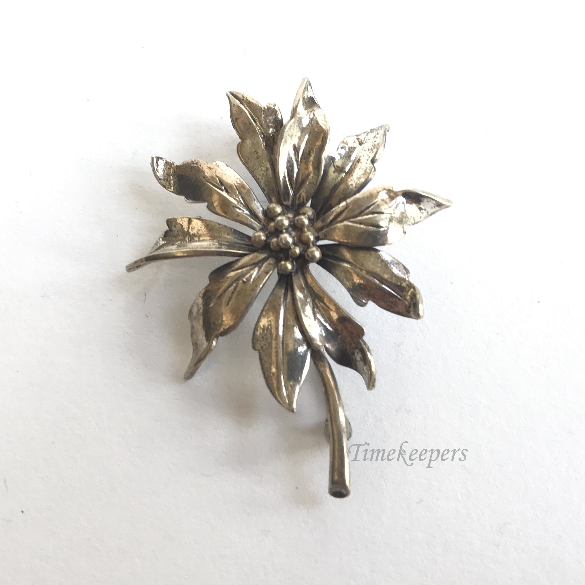 e218 Vintage Original Sterling Silver Flower Brooch Pin