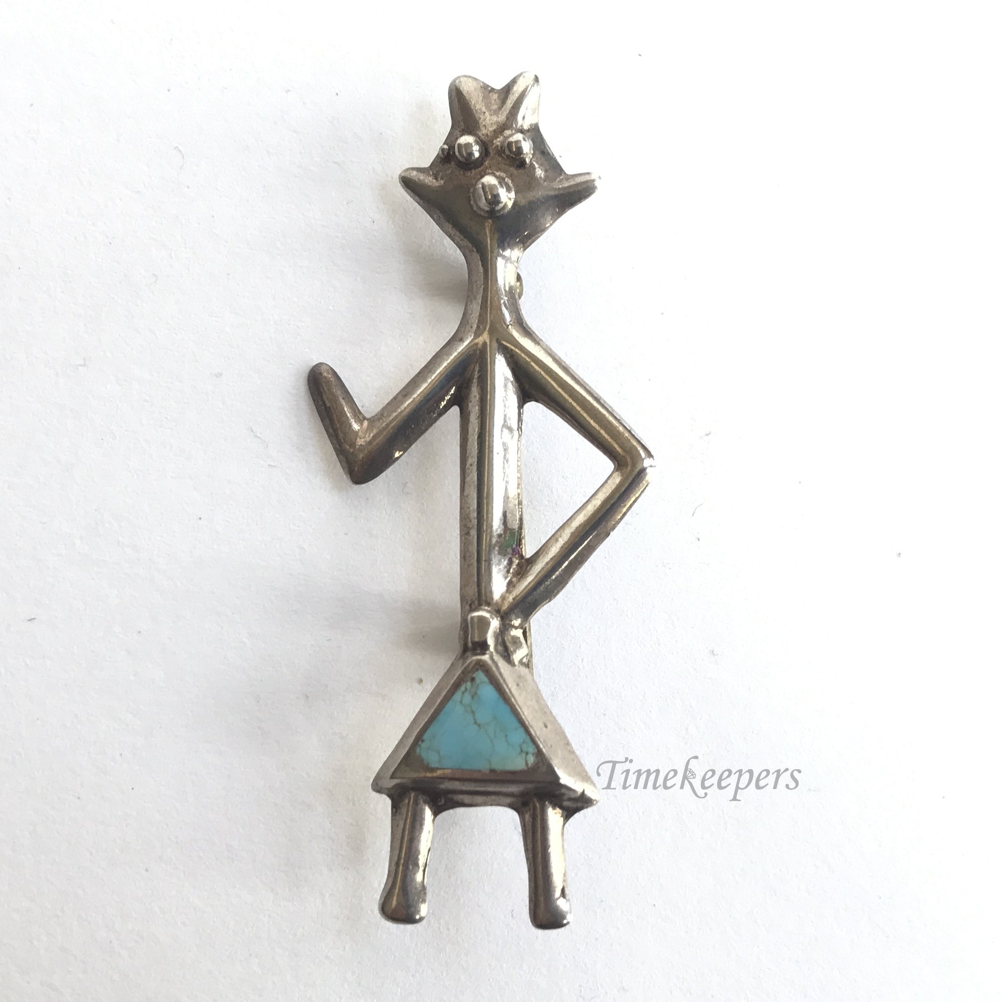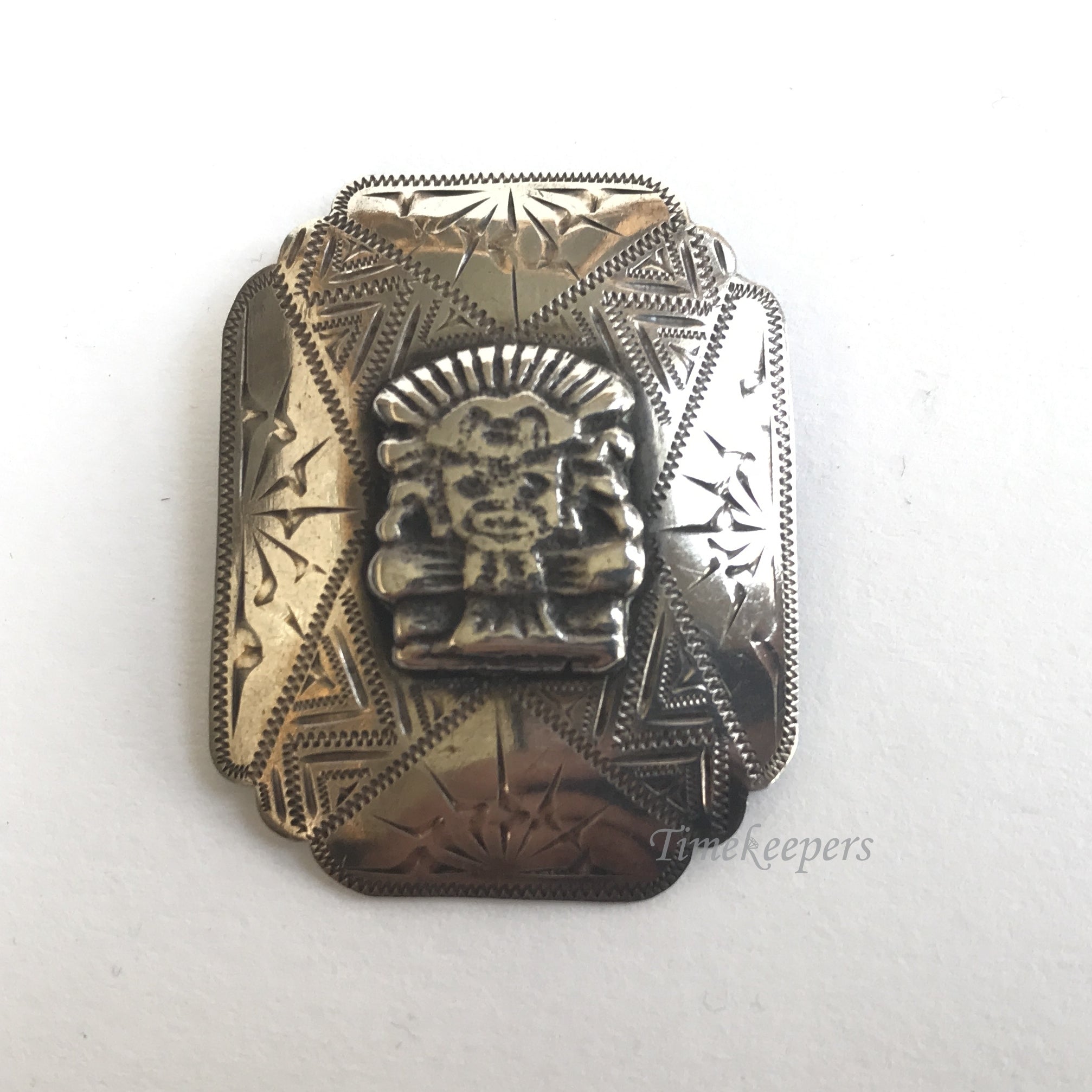 e219 Vintage Original Sterling Silver Aztec Brooch Pin