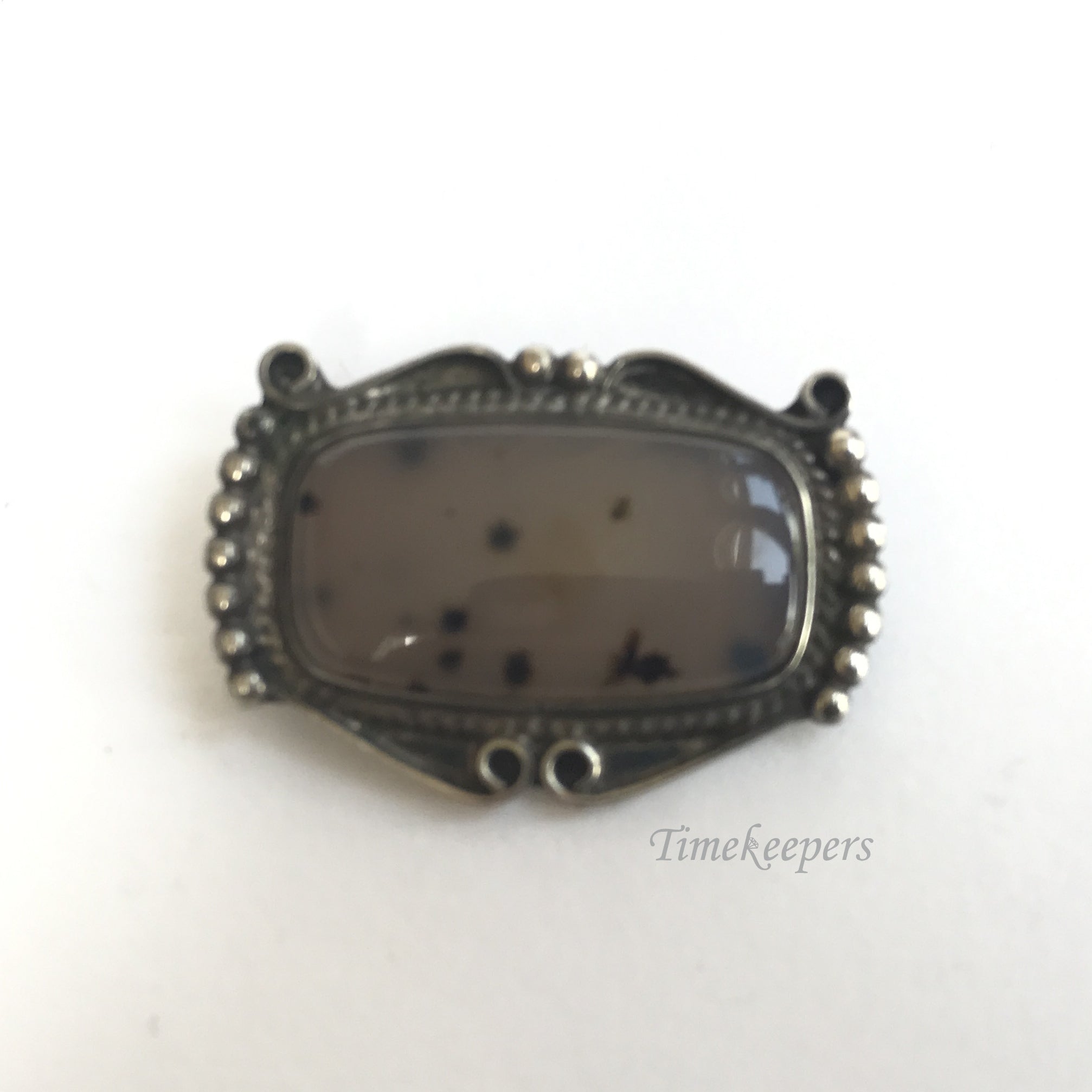 e223 Vintage Original Sterling Silver Oval Stone Brooch Pin