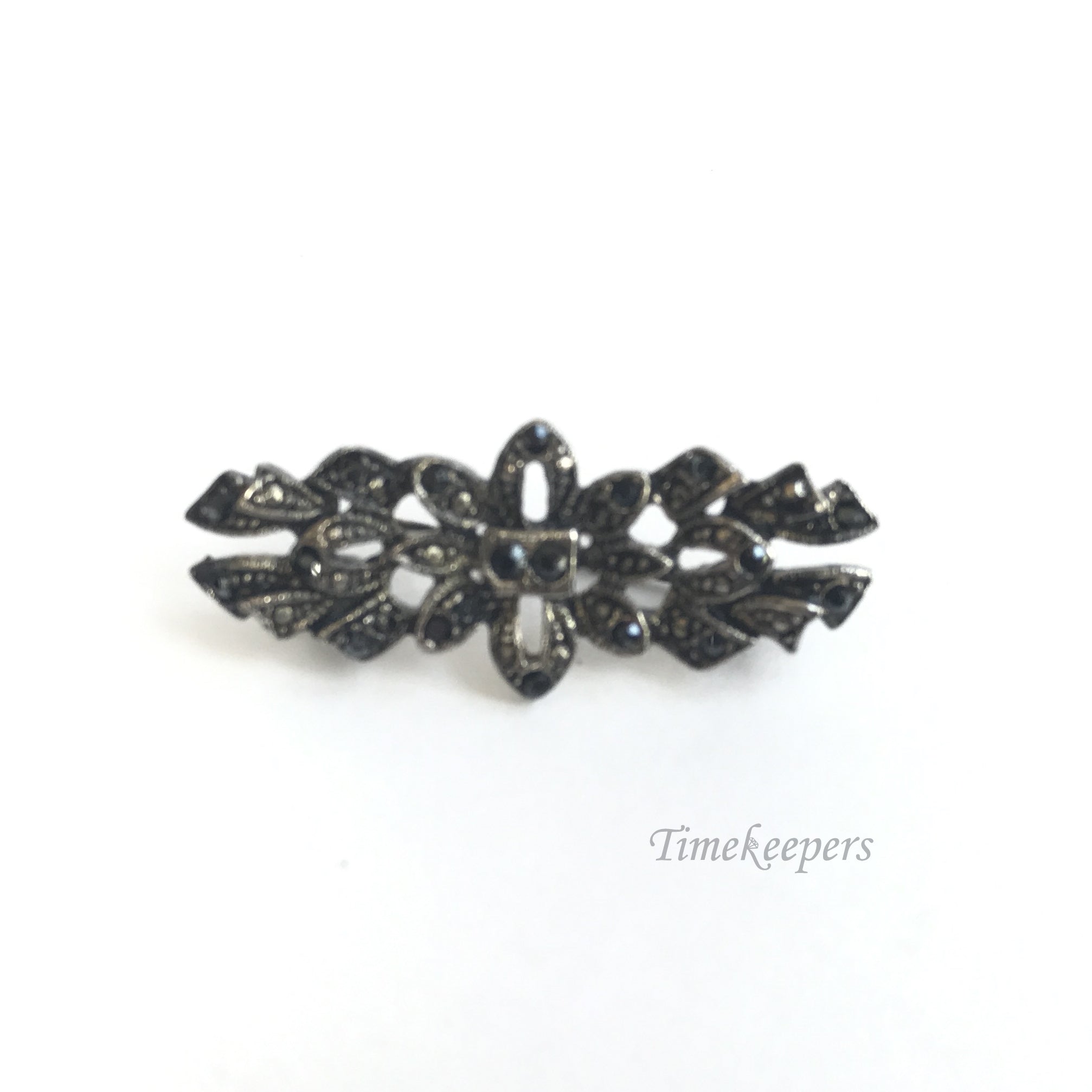 e228 Vintage Original Silver tone Marcasite Floral Brooch Pin