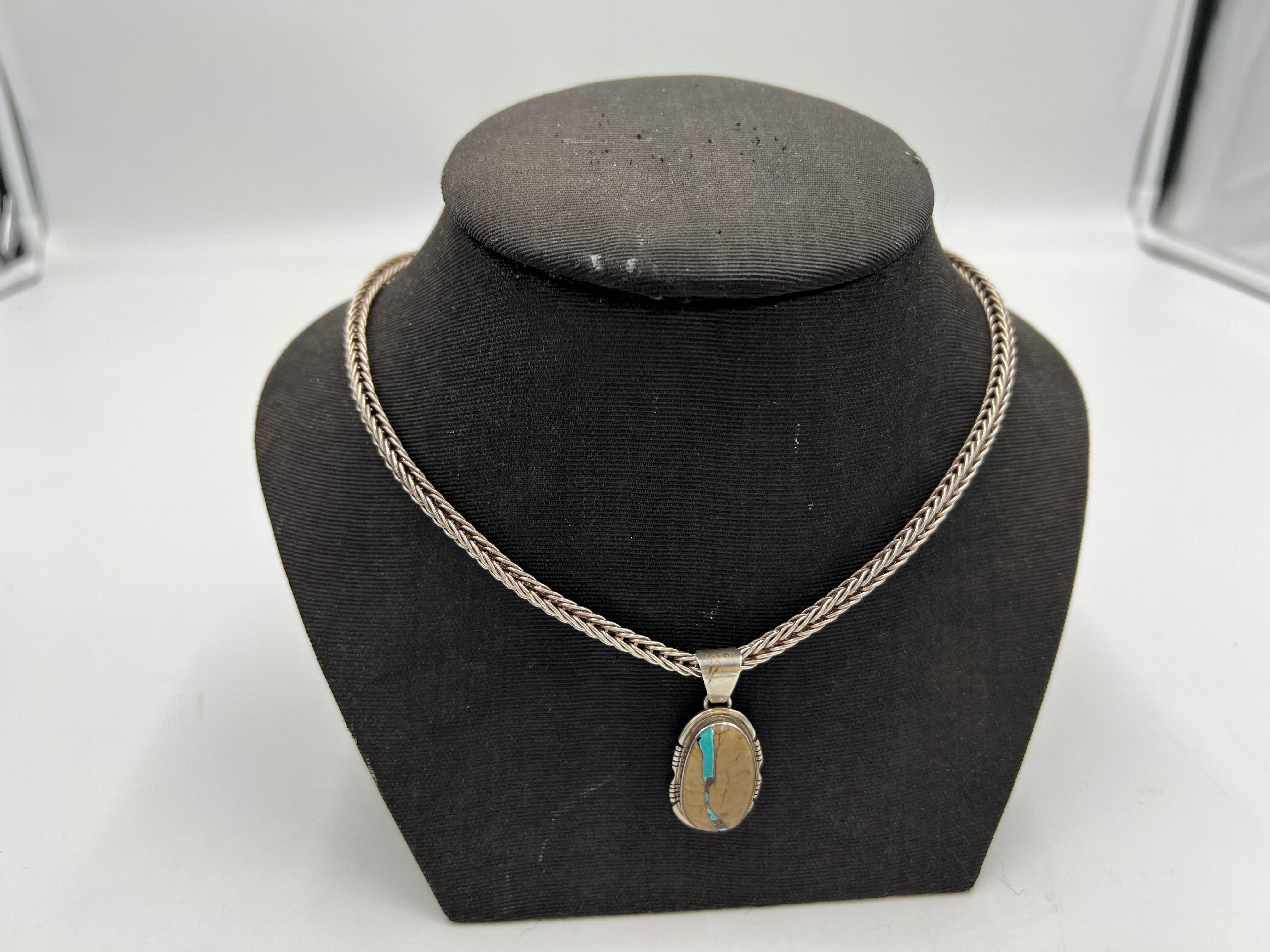 t949 Unique Navajo Sterling Silver Turquoise Pendant and Necklace