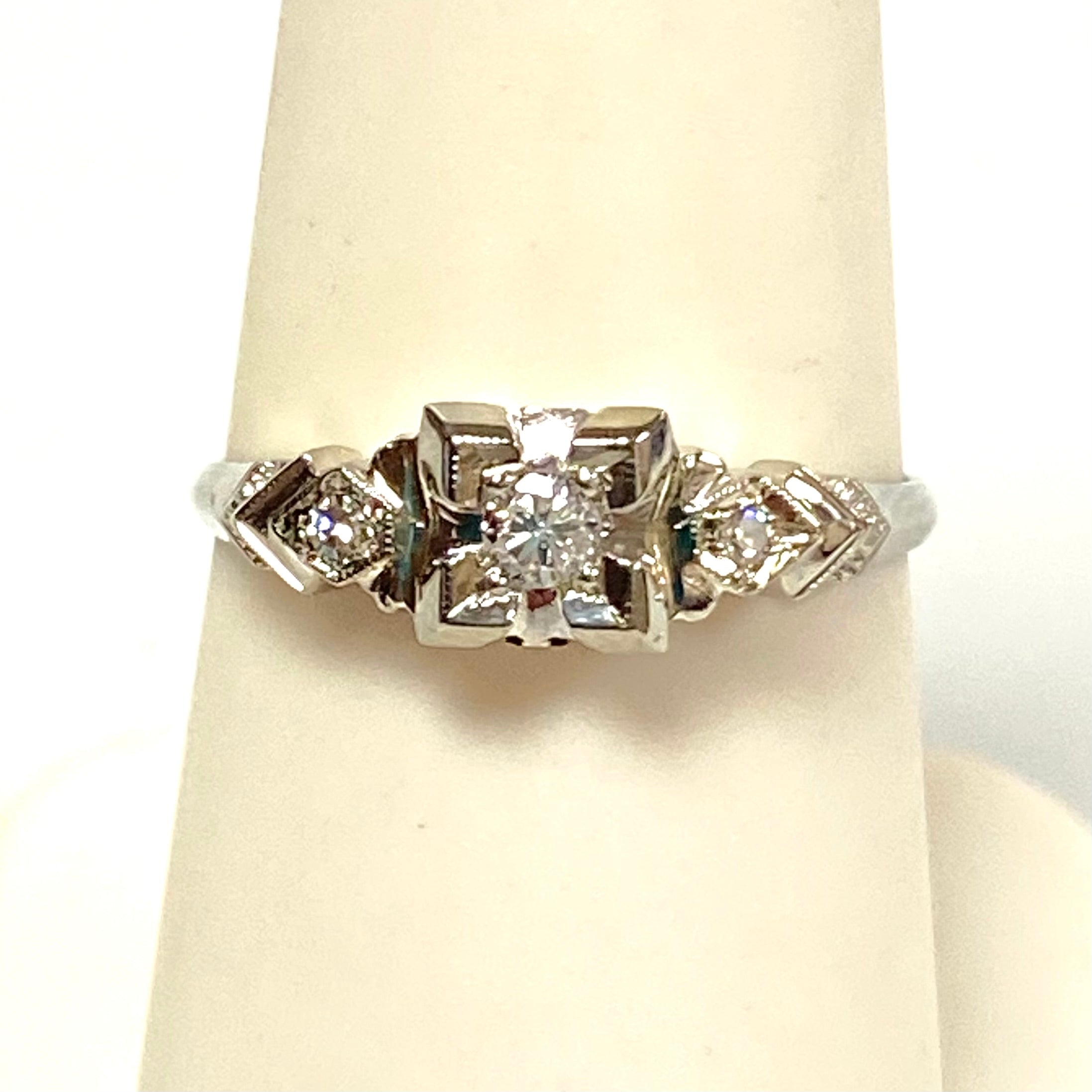 v250 Vintage 14K White Gold .15cts Diamond Stone Engagement Ring Size 7