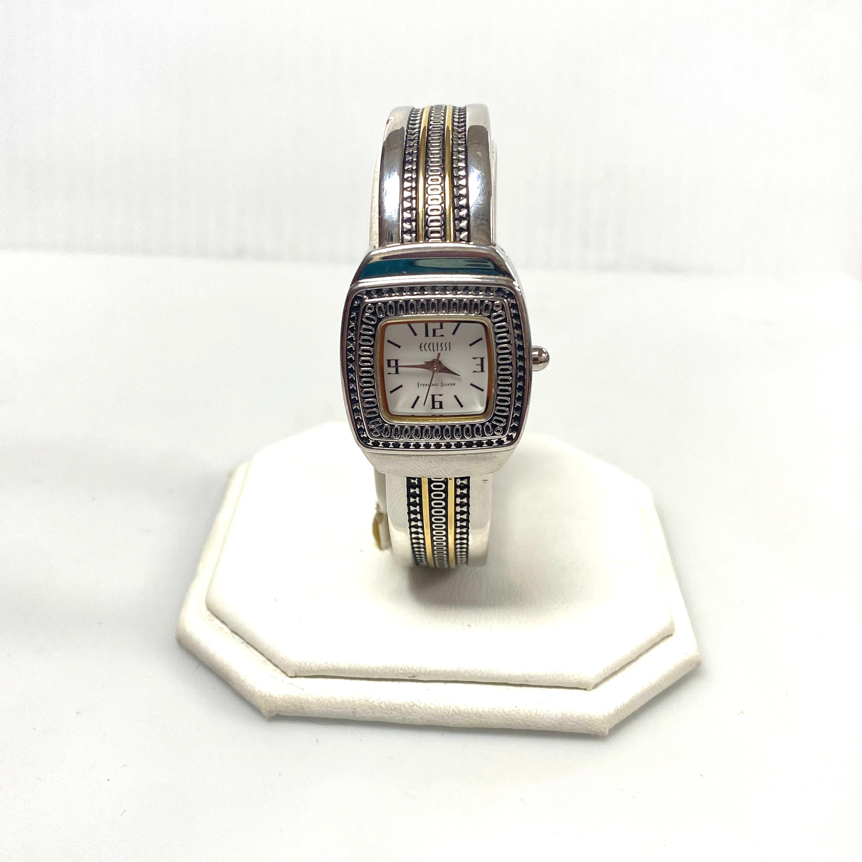 v242 Vintage Ecclissi Sterling Silver Case and Band Quartz Stainless Steel Back Wrist Watch 33030