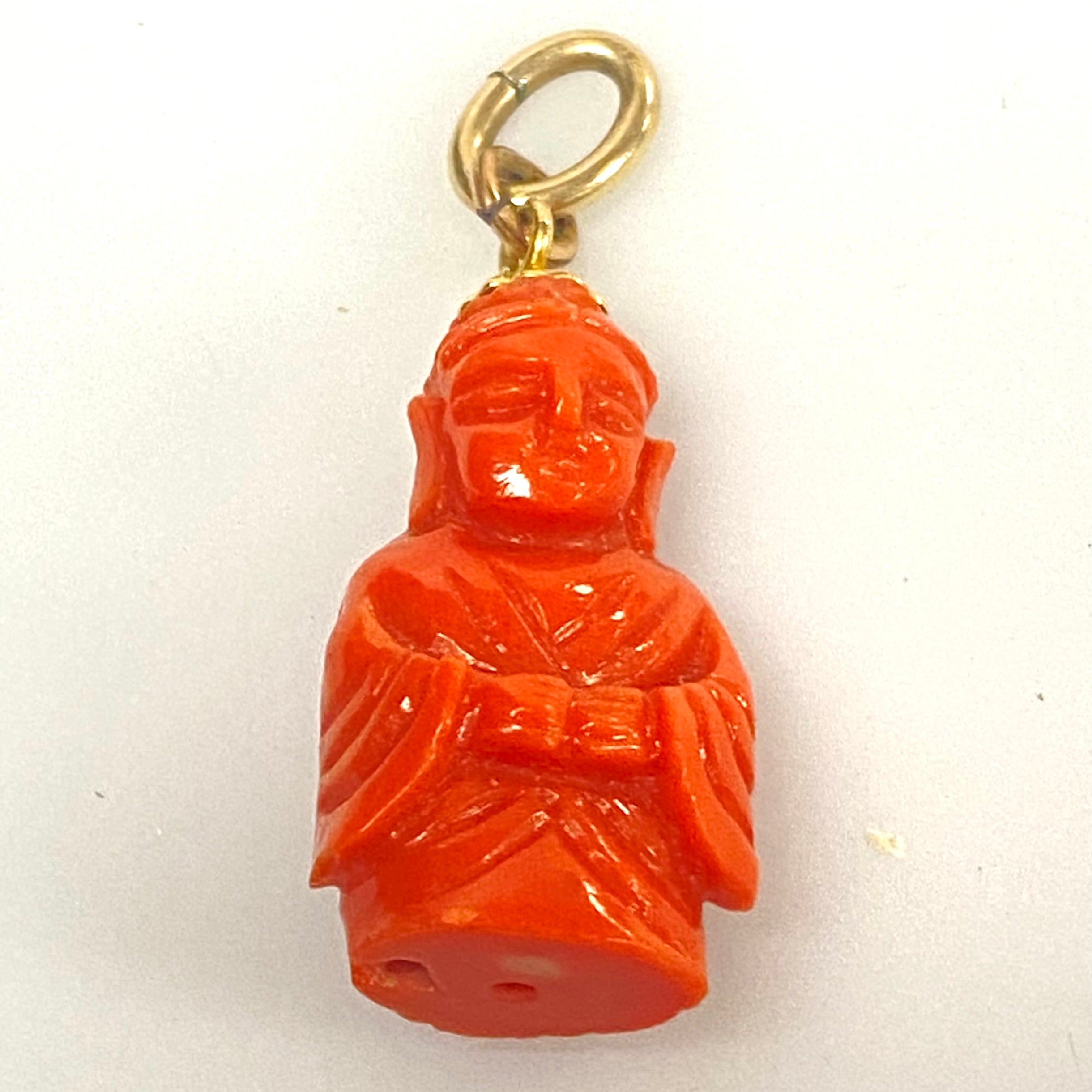 v245 Vintage Momo Carved Coral Buddha Pendant Charm on 14k Yellow Gold