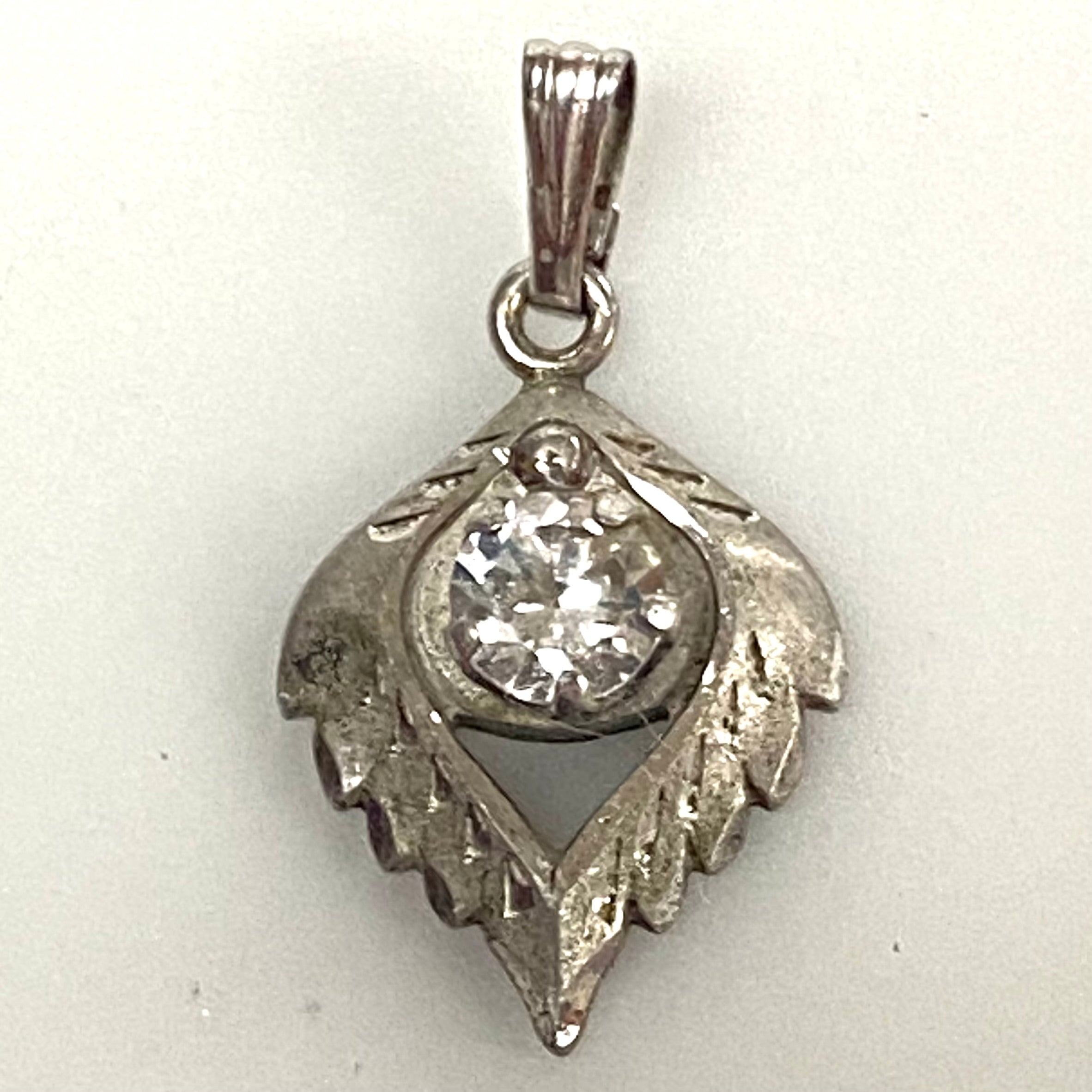 v256 Vintage Sterling Silver White Stone Cute Charm Pendant