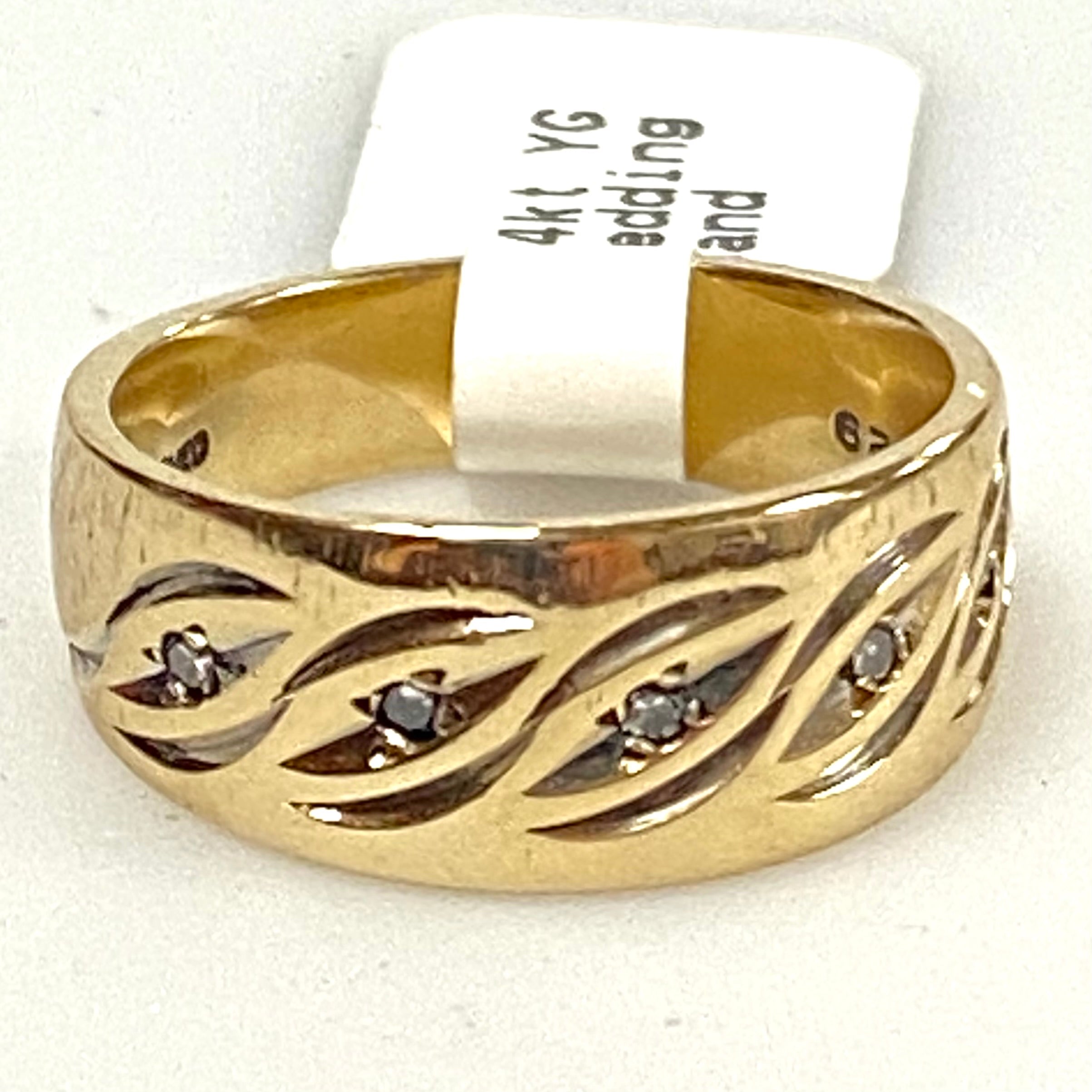 v258 Vintage 14K Yellow Gold Diamond Chips Stone Wedding Band Ring Size 6.5