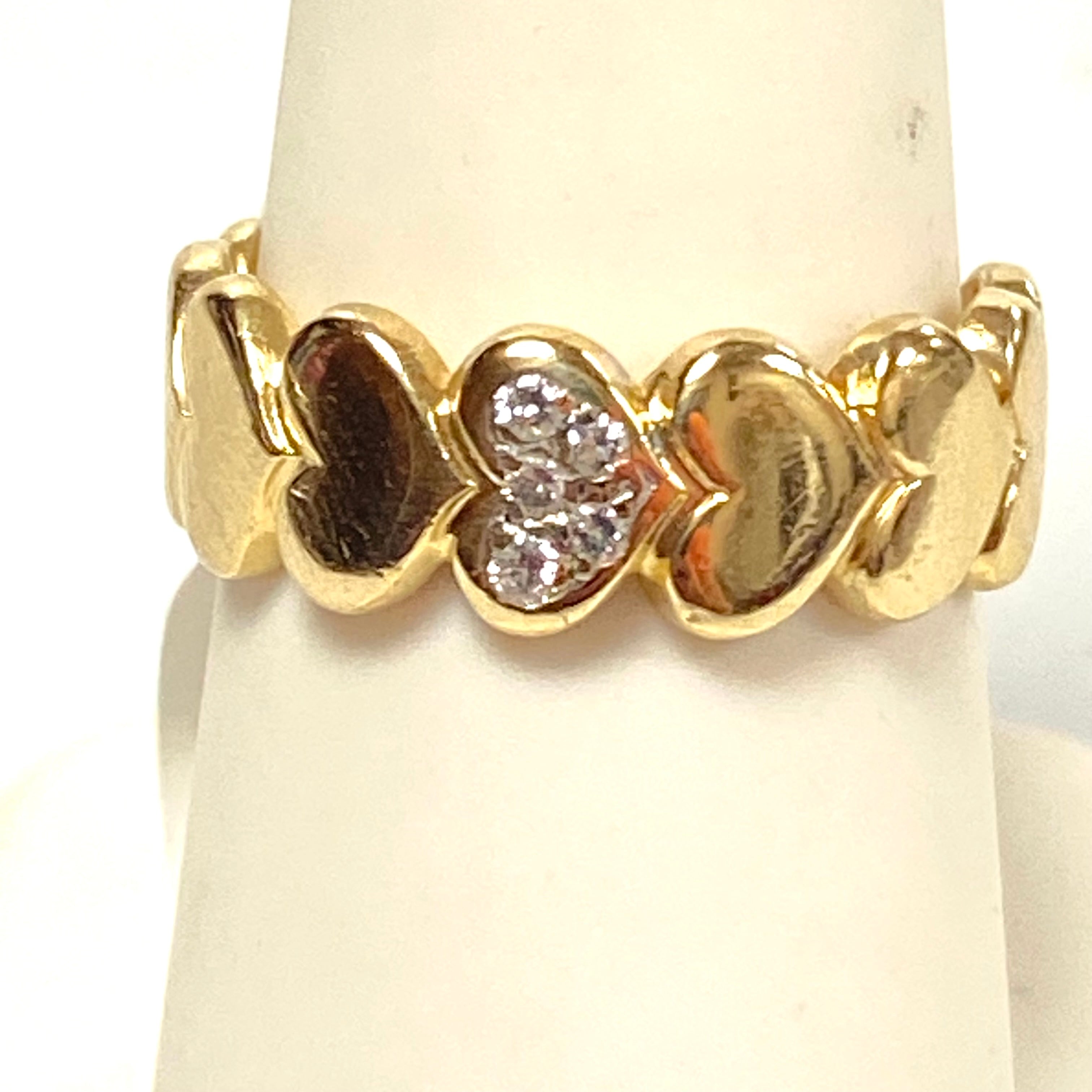 v259 Vintage 14K Yellow Gold Diamond Chips Stone Heart Wedding Band Ring Size 7
