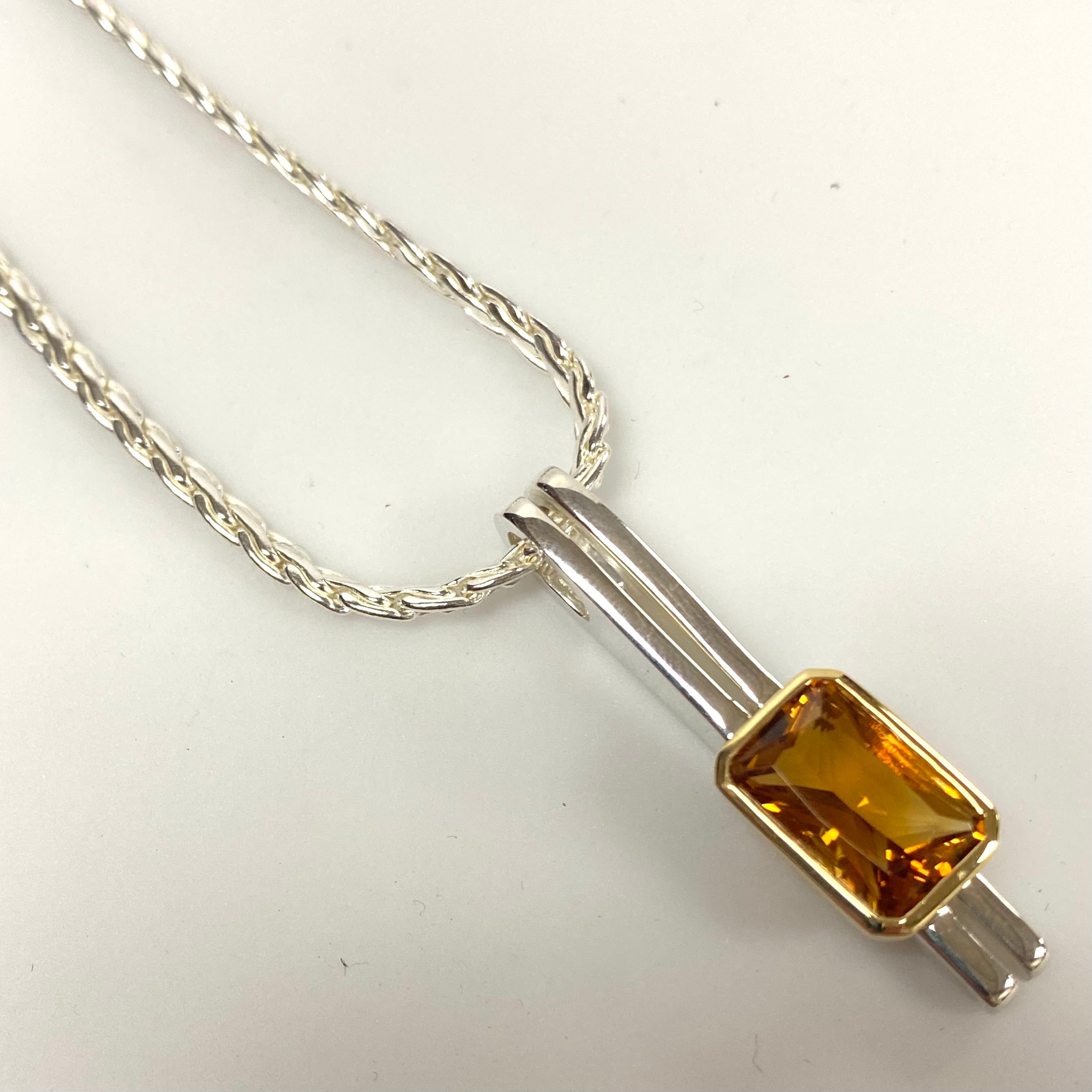 v264 Vintage Sterling Silver 999 Chain Necklace 16" Genuine Citrine 18k Pendant Lorenzo Fancy Bianchi