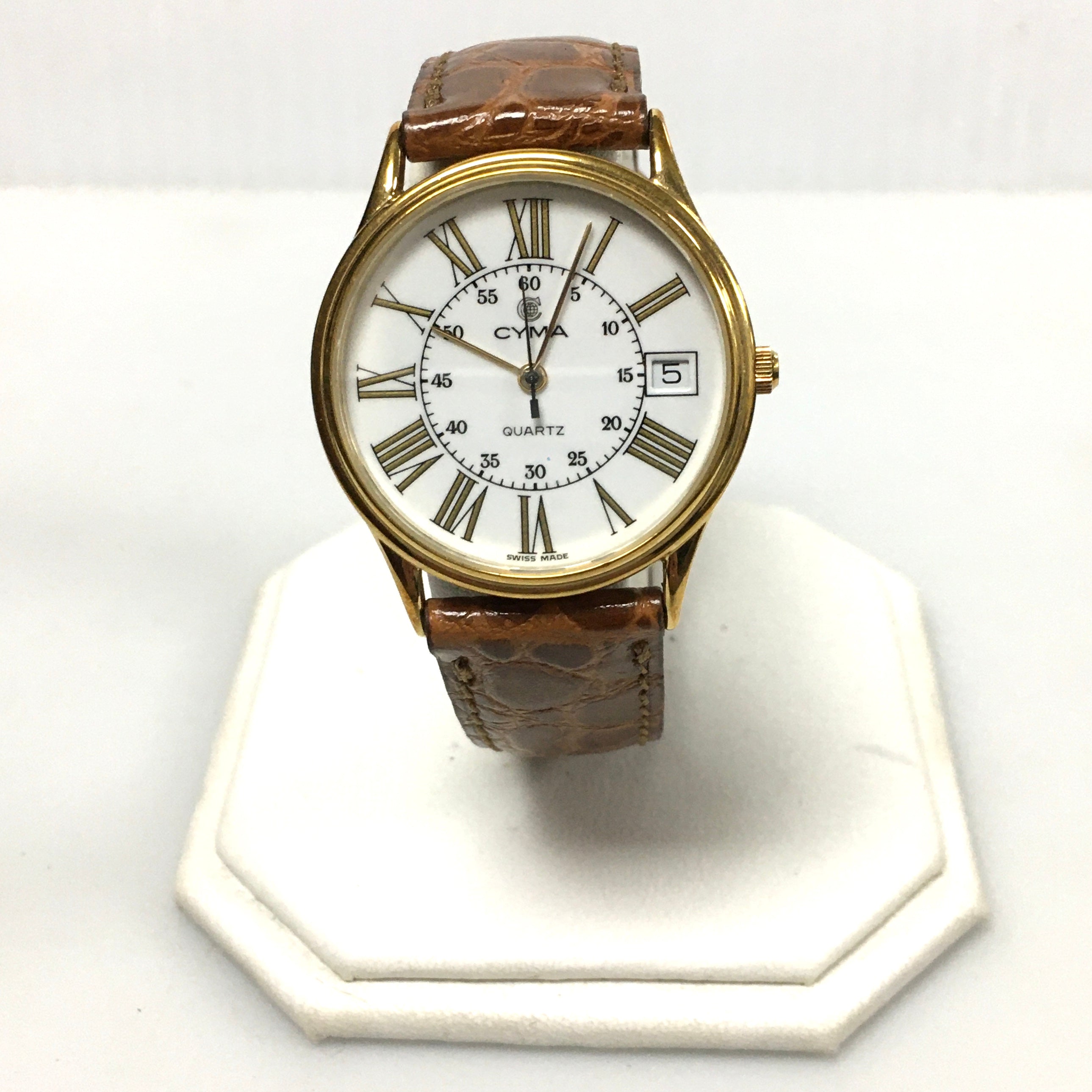 v291 Vintage CYMA Quartz Swiss Made Gold Tone Wrist Watch Leather Band