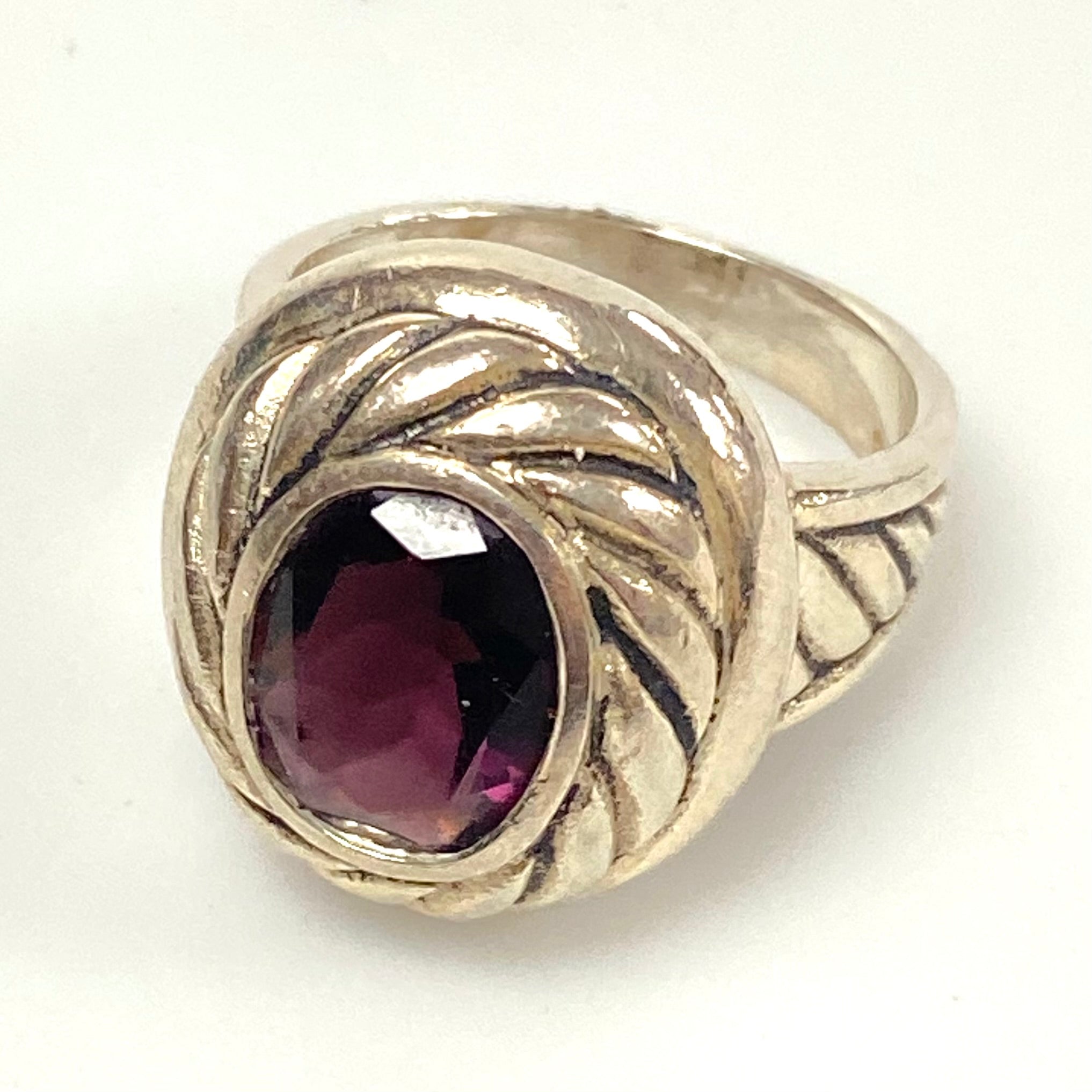 v575 Vintage Dark Red Garnet Ring in 1970's Sterling Silver Setting Size 7.75