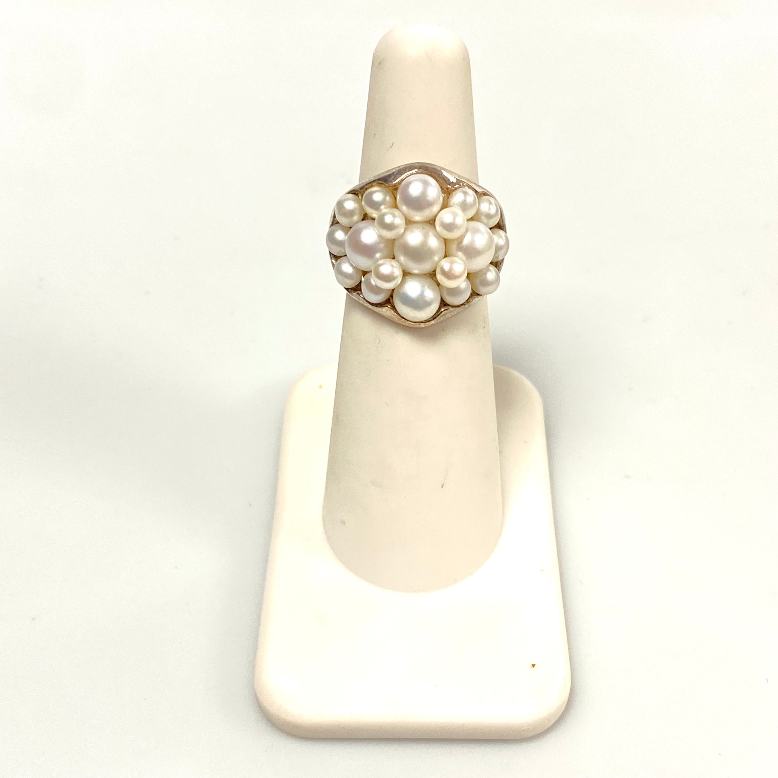 v582 Vintage Sterling Silver Tracey Mayer Pearl Dome "cha-cha" Cluster Ring Sz 5