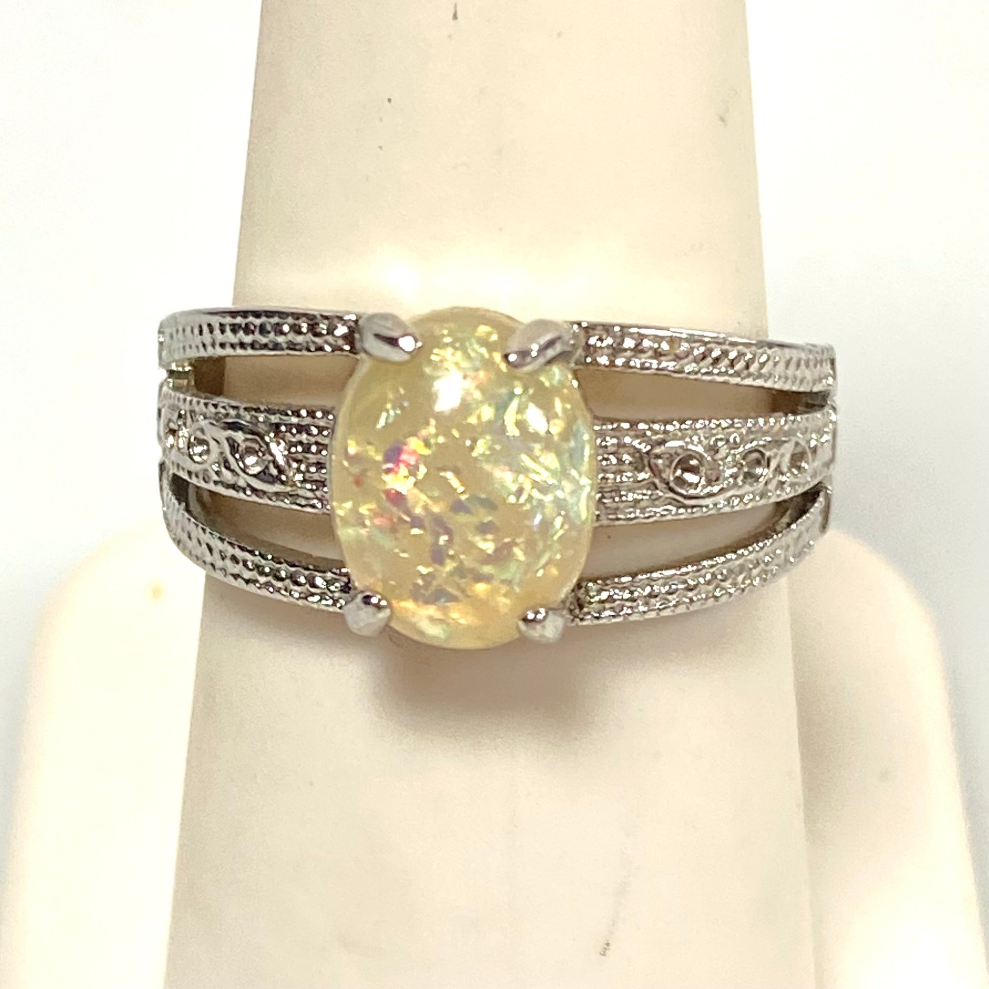 v586 Vintage Oval Yellow Stone Ring in Sterling Silver 4-Prongs Setting Sz 8.25