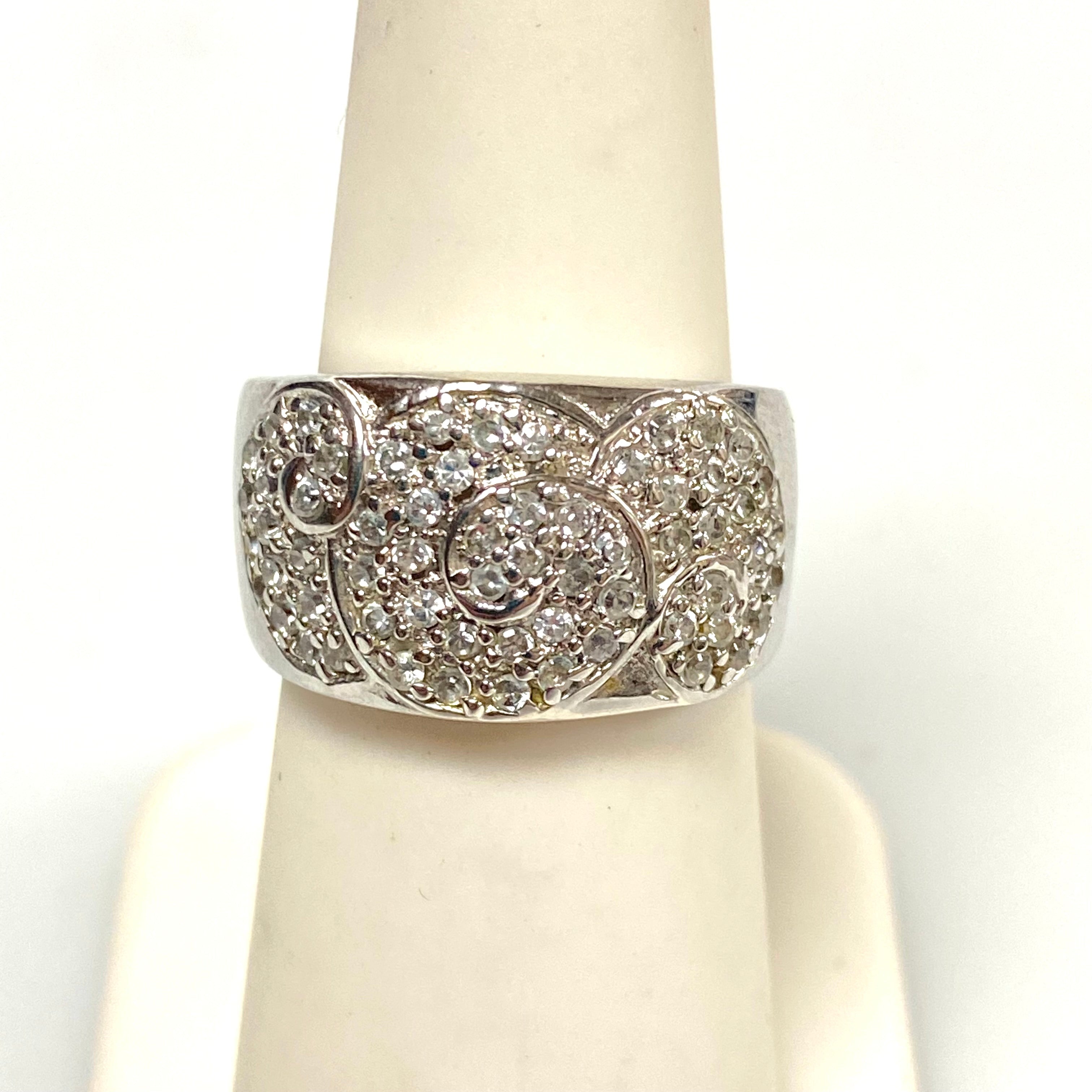 v587 Vintage Sterling Silver Pavé Clear Stones 12mm Wide Band Ring Sz 6.5