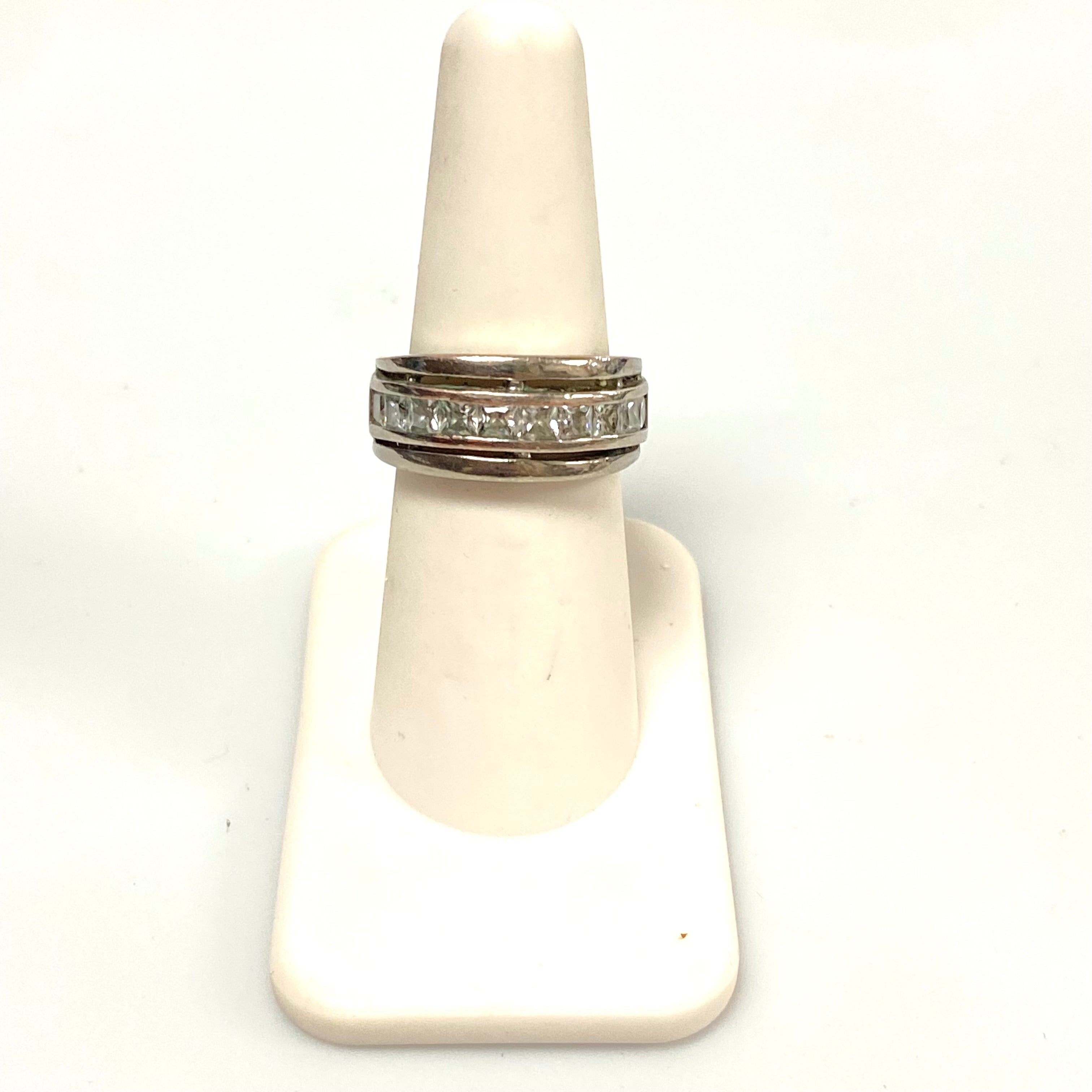 v589 Vintage Sterling Silver Channel-set White Stone 9mm Wide Band Ring Size 7