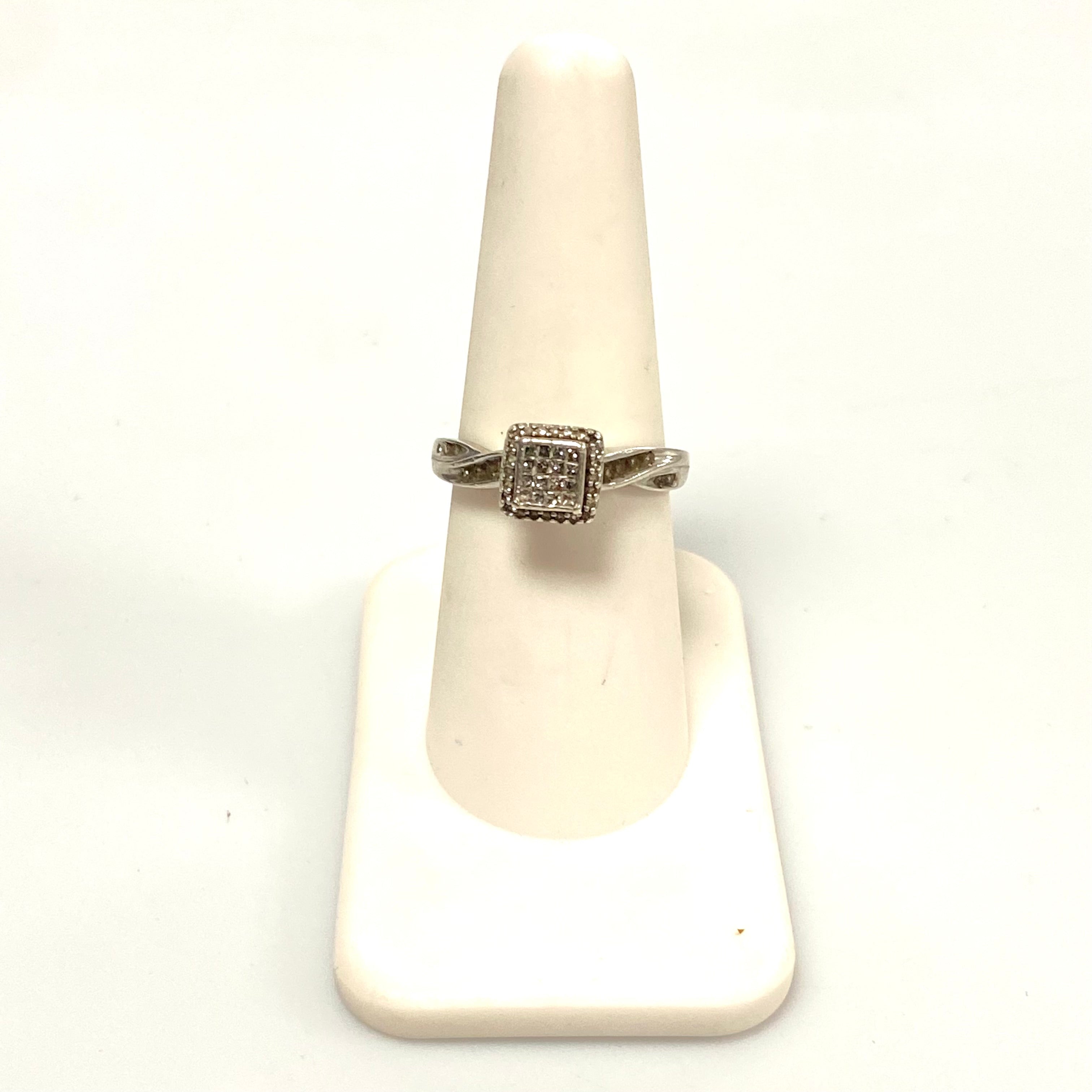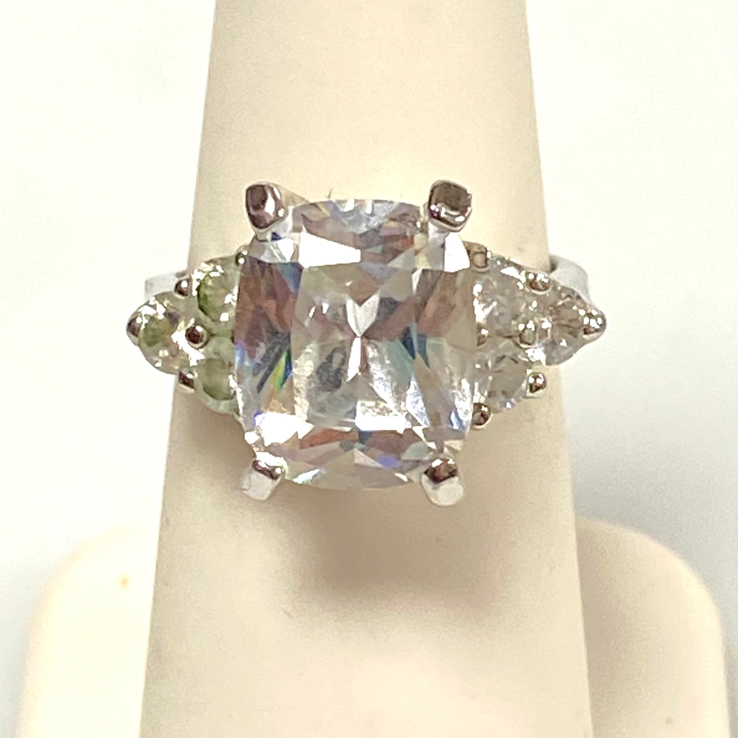 v591 Vintage Sterling Silver Cushion-Cut White Cubic Zirconia Stone Ring Size 6