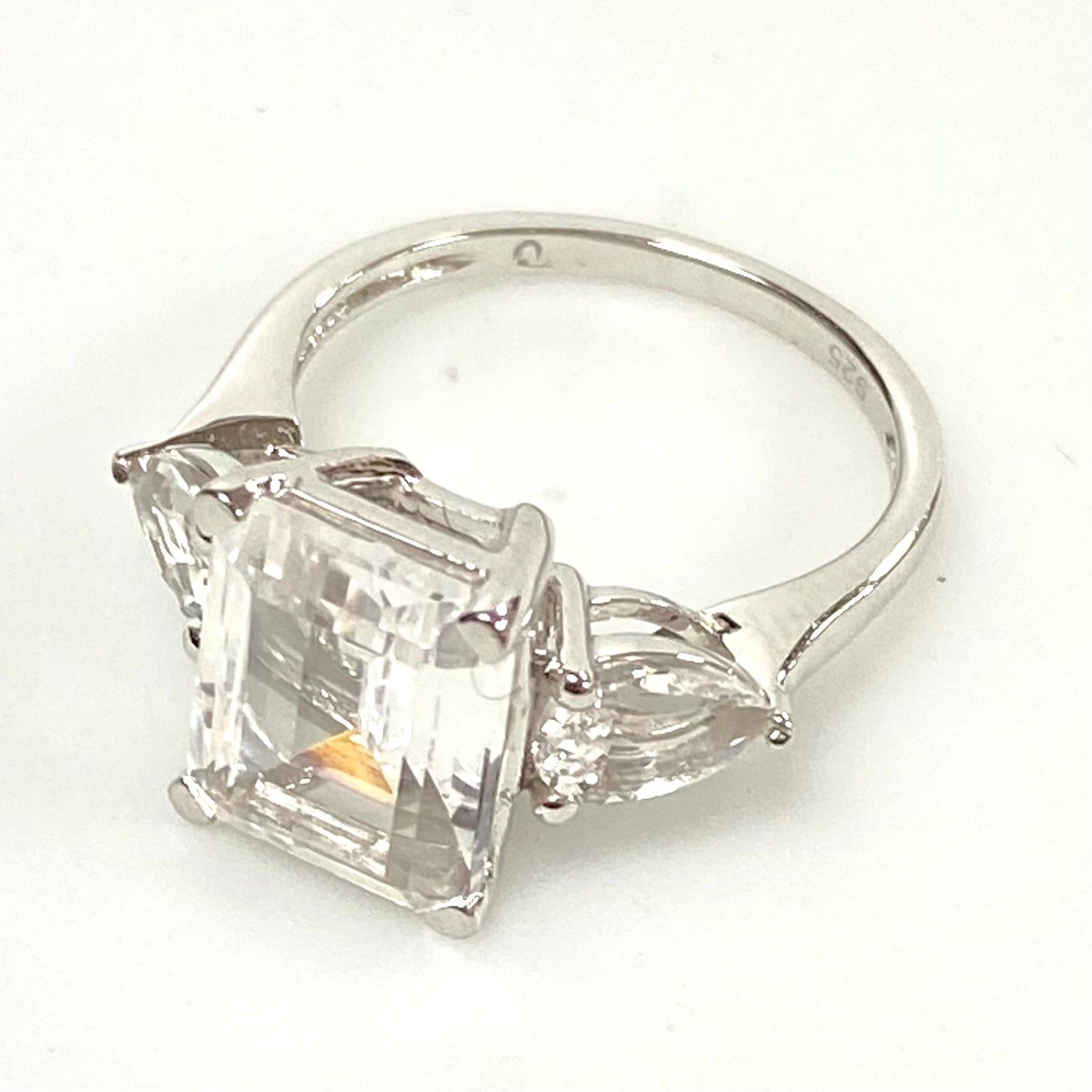 v592 Vintage Sterling Silver Emerald-Cut White Cubic Zirconia Stone Ring Size 5