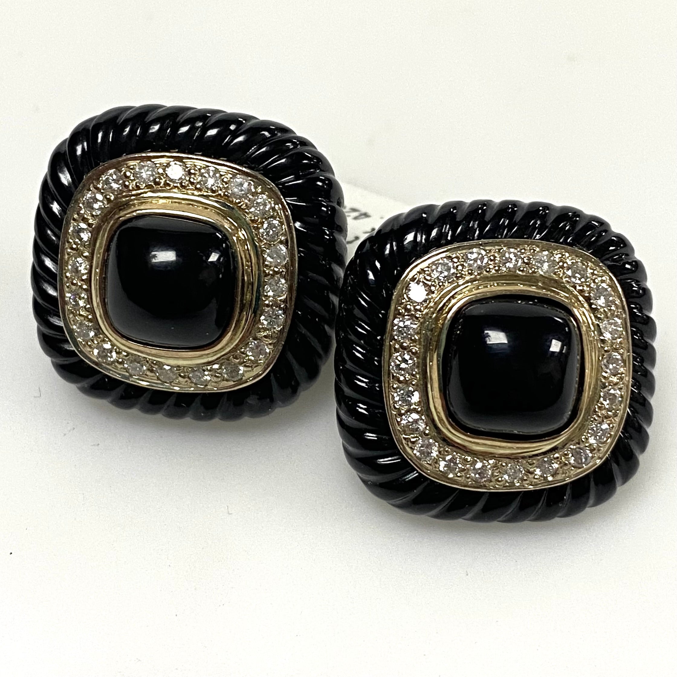 v593 Pair of 14K White Gold Black Onyx and 0.42cts Diamond Stud Pierced Earrings