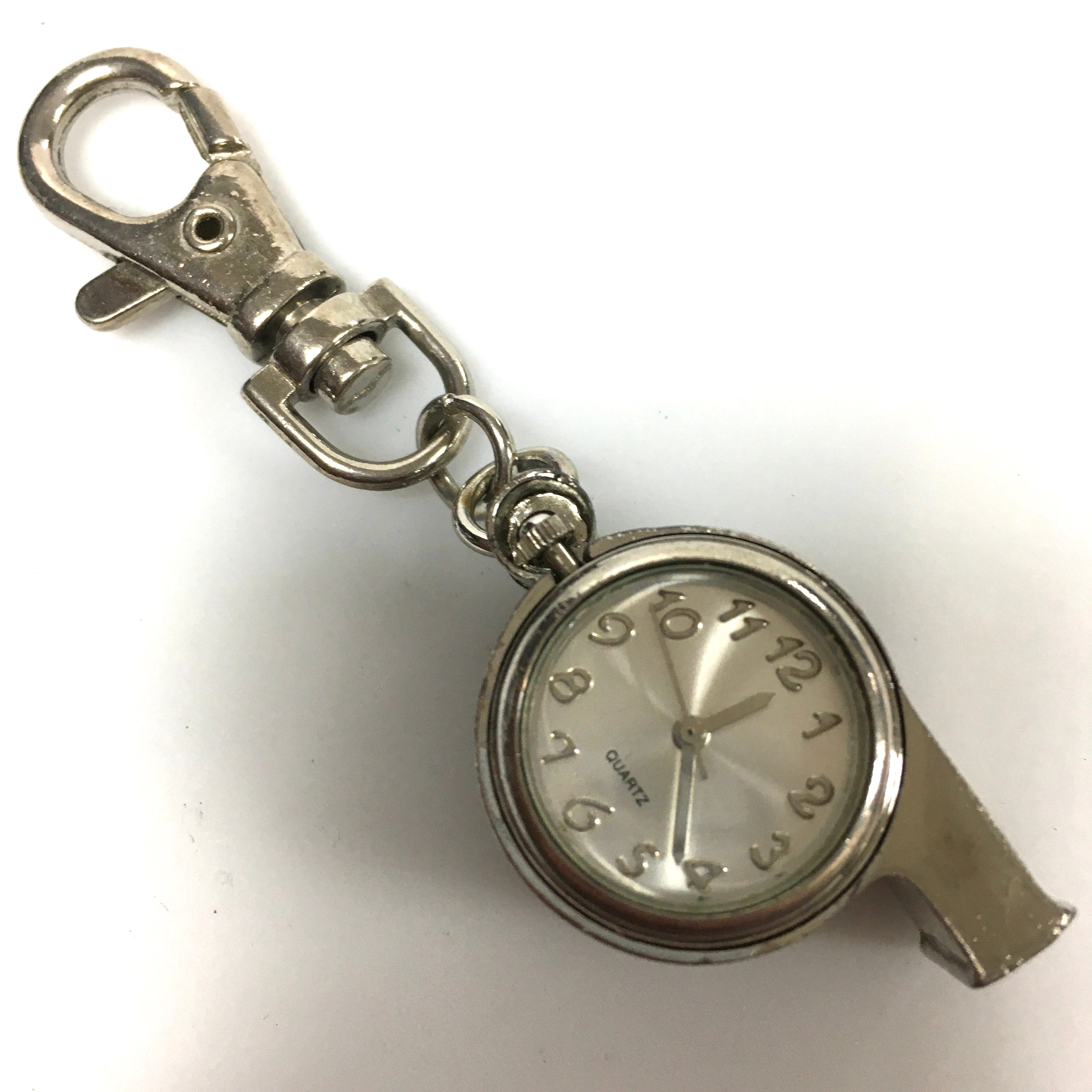 v296 Vintage Quartz Silver Tone Pocket Watch Working Whistle Pendant Watch