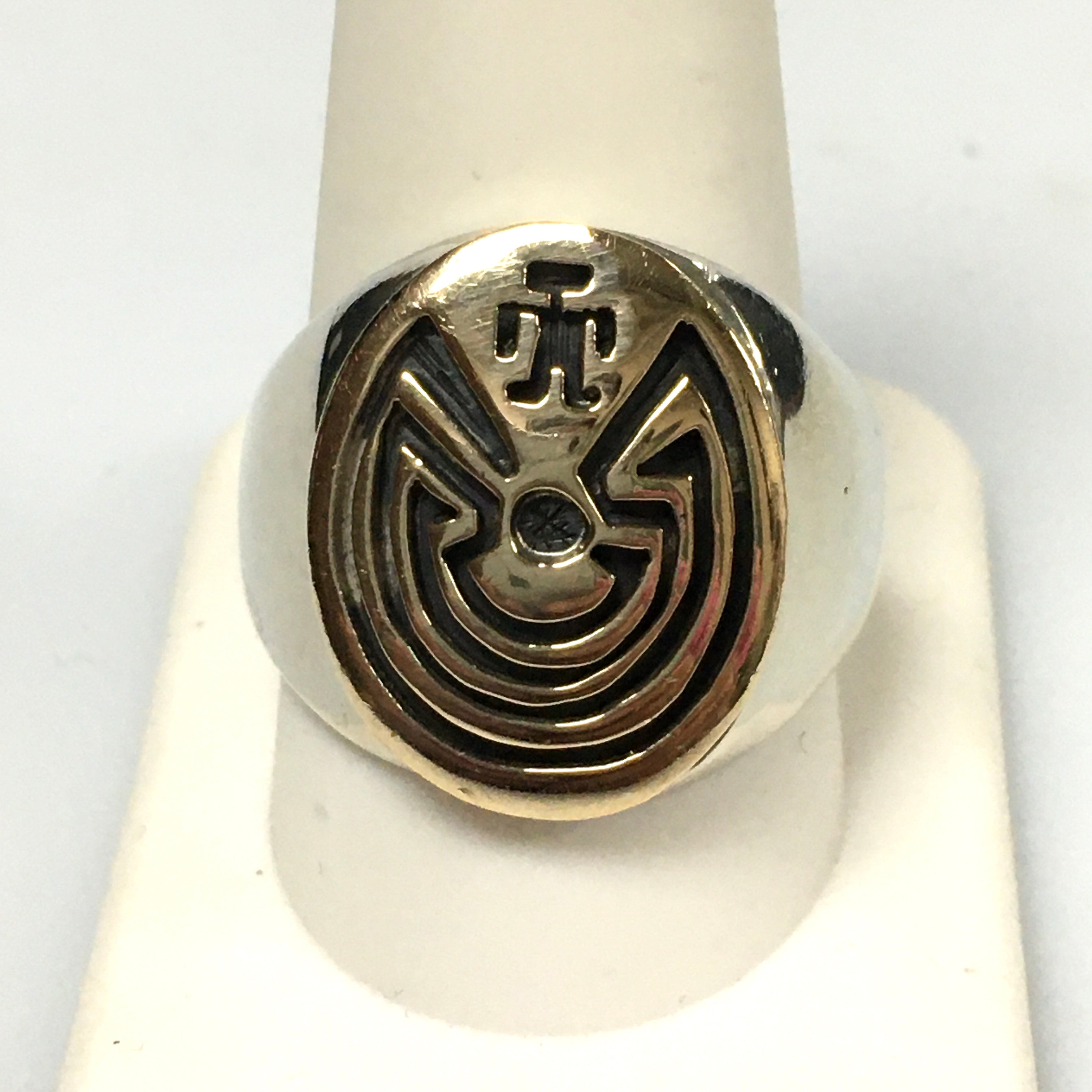 v302 Vintage Native American Sterling Silver 14k Yellow Gold Man In The Maze Ring Size 11
